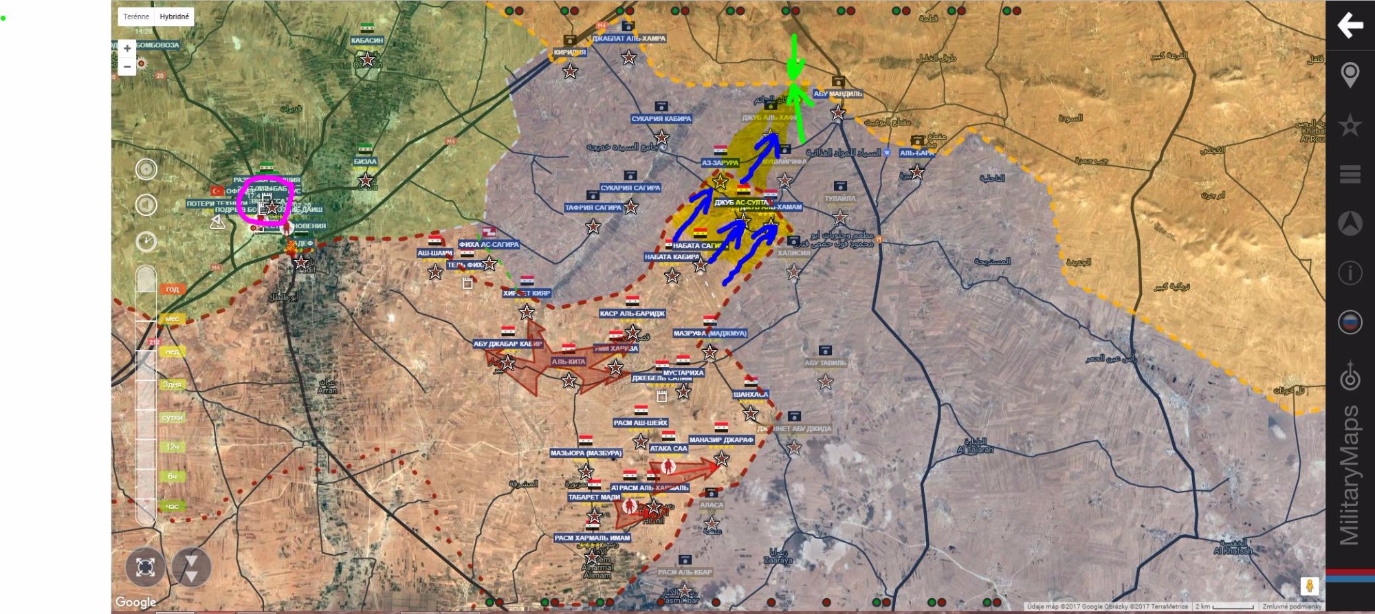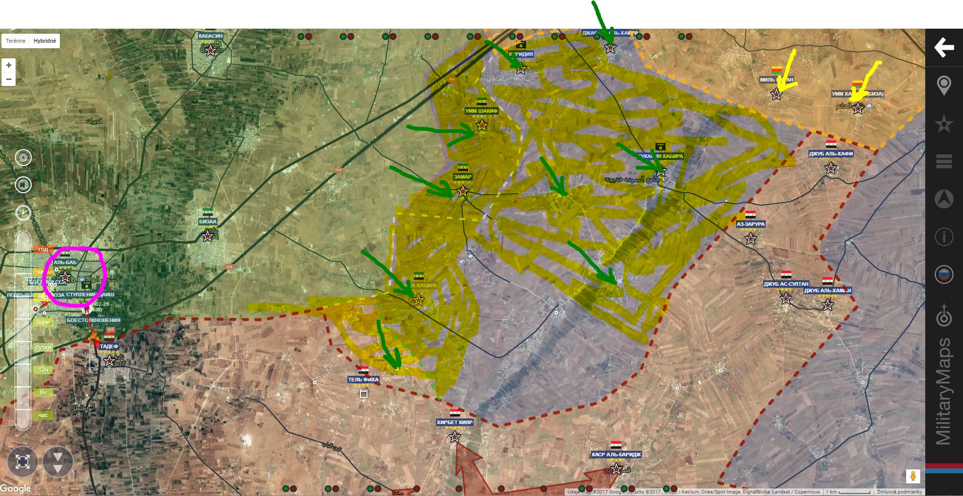 Kým som to spracoval, tak sa po obsadení Jub Al Khava kotol uzavrel, SAA+ dosiahla línie SDF+, niekde v týchto miestach!