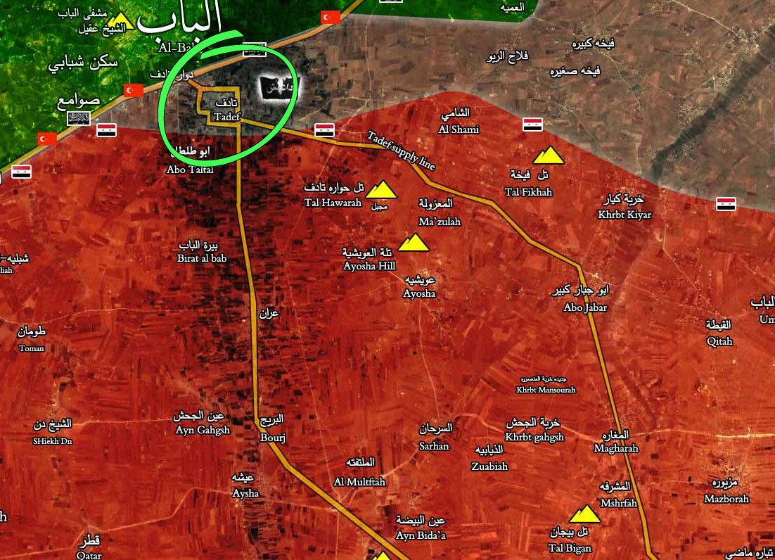 přichází nepotvrzené zprávy, že rebelové (asi FSA) mají pod kontrolou Tadef (místo dotyku SAA+ a FSA u Al Bab)