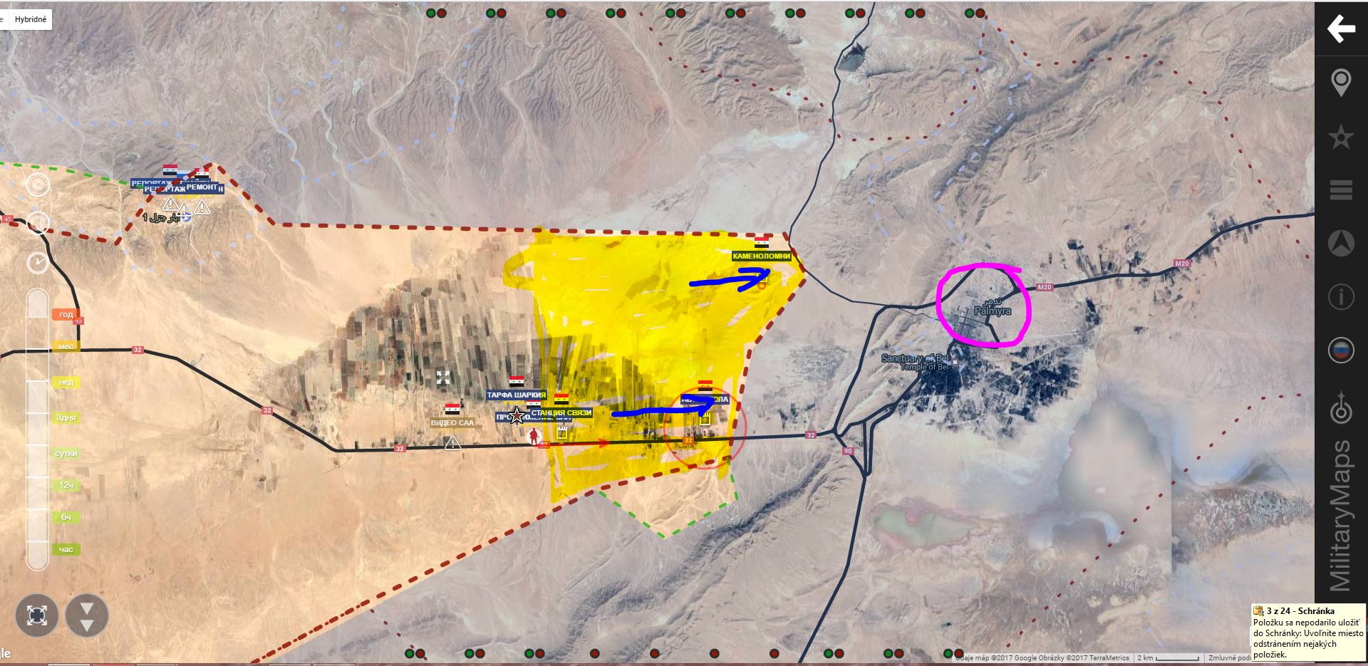 Mapa zaměřená na postup u Palmýry