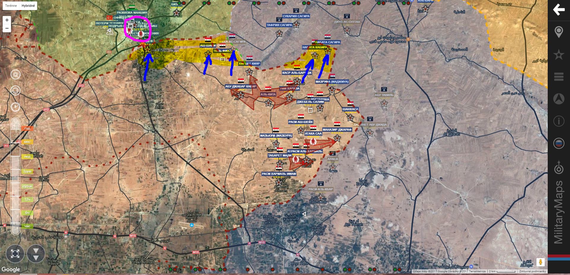V. Aleppo, Al Bab. SAA+ získala územie od Tadef po Nabata Sagira, zľava.