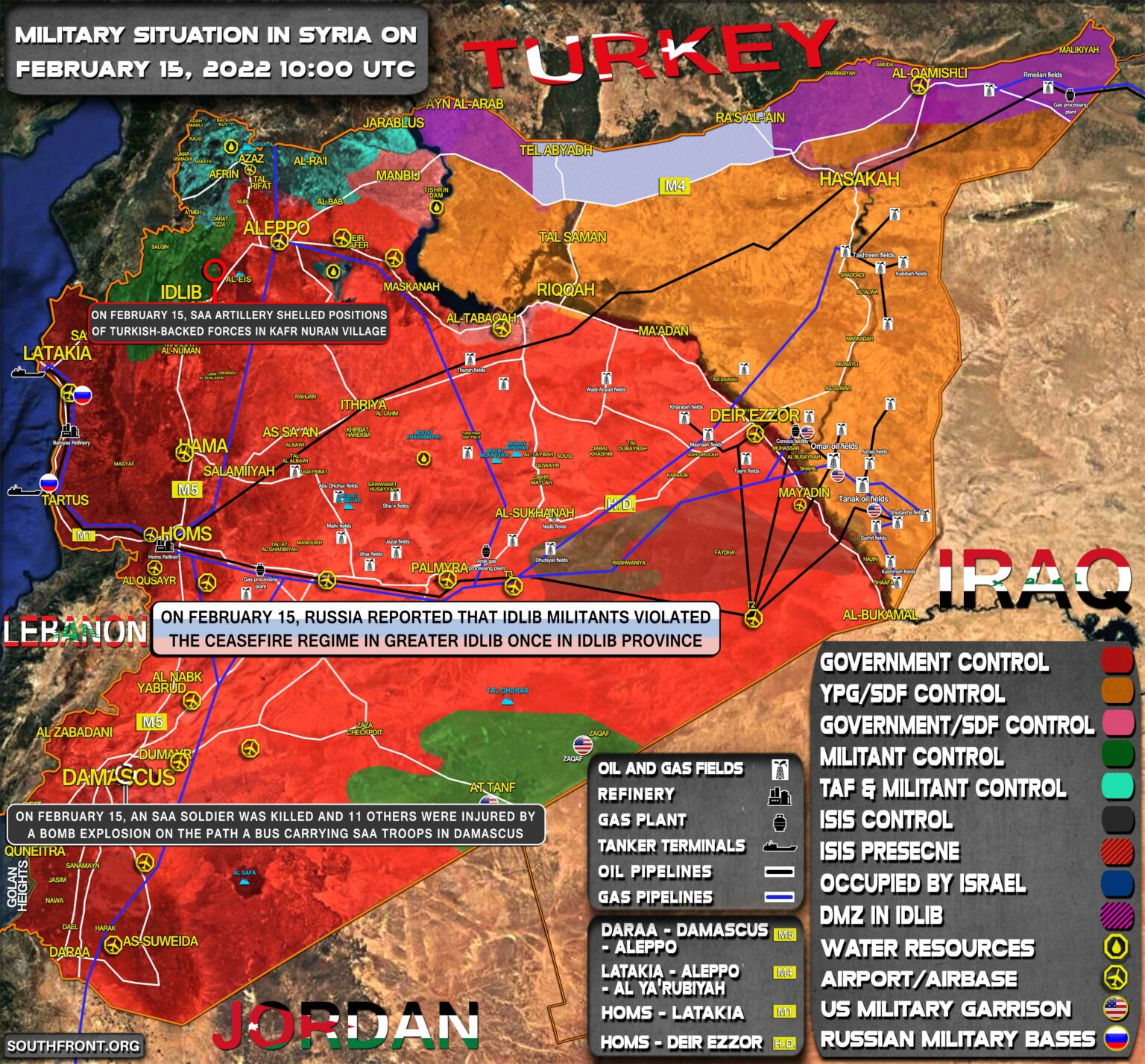 Vojenská situácia v Sýrii 15. februára 2022 (aktualizácia mapy)