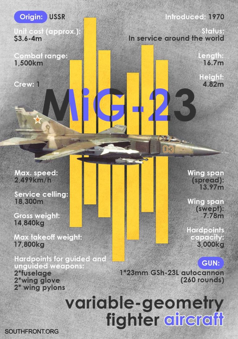 MiG-23UB je dvojmiestna, pokročilá cvičná verzia stíhacieho lietadla MiG-23 sovietskej výroby, ktorá je chrbtovou kosťou SyAAF.