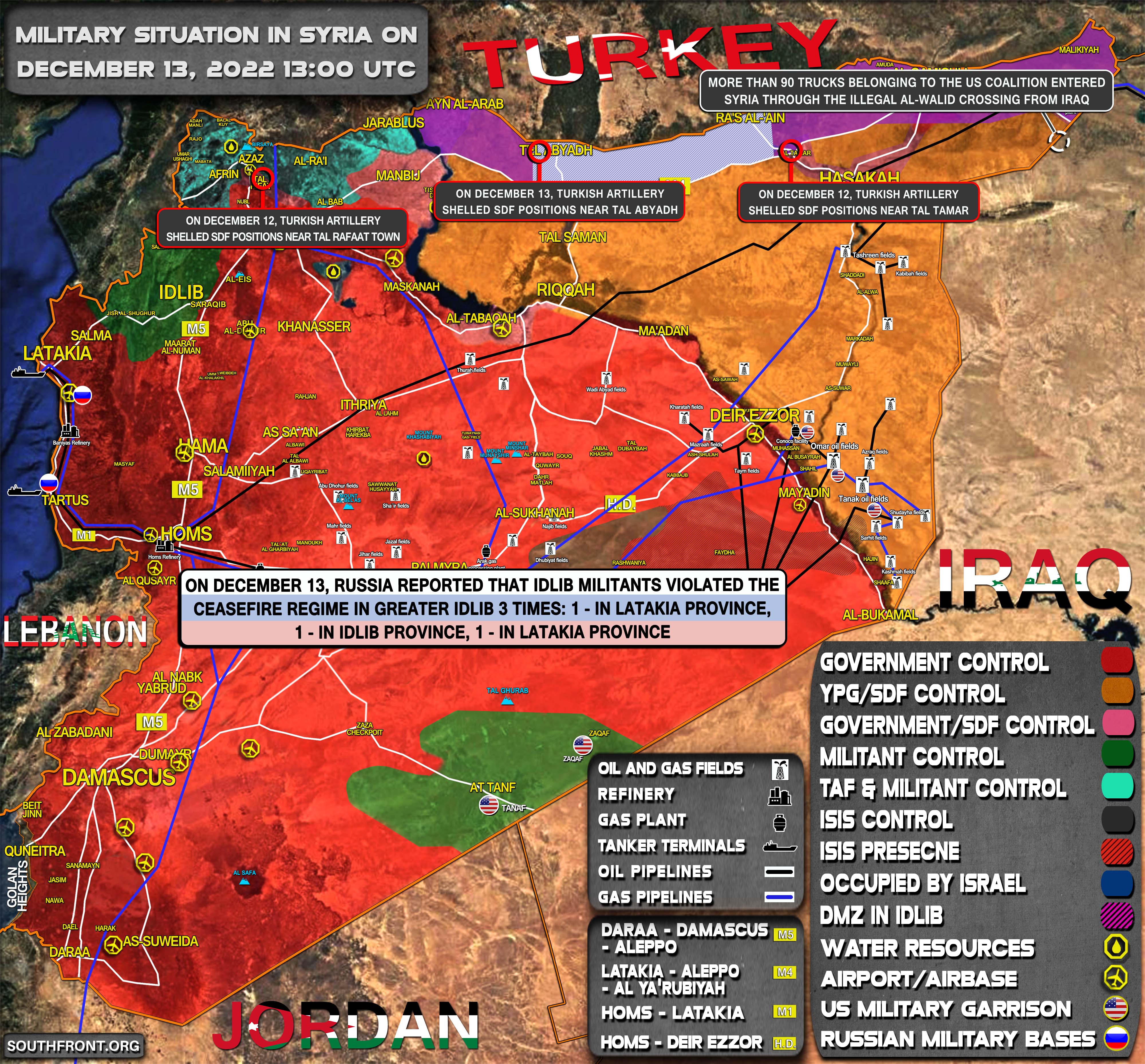 Vojenská situácia v Sýrii 13. decembra 2022 (aktualizácia mapy)