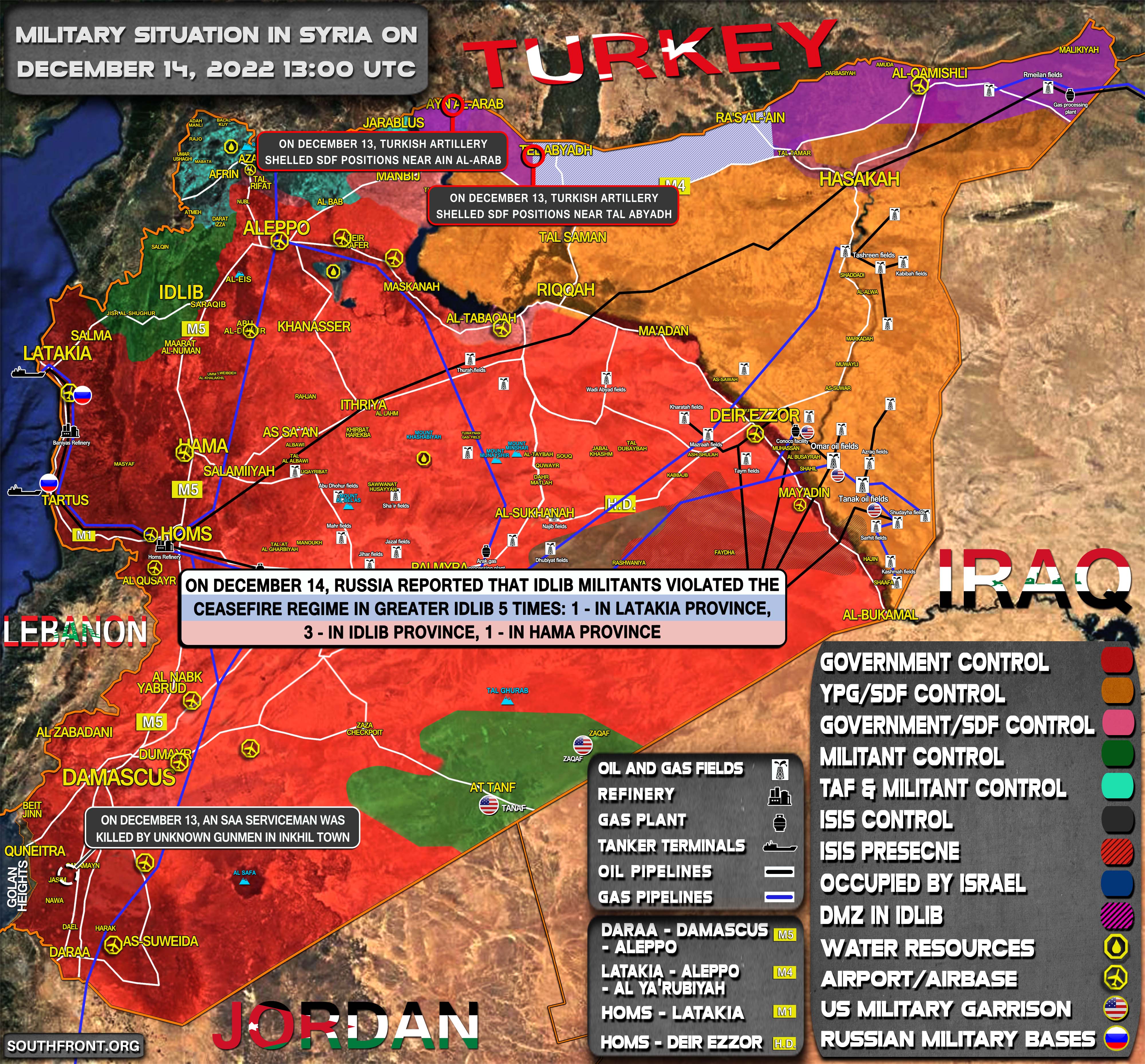 Vojenská situácia v Sýrii 14. decembra 2022 (aktualizácia mapy)