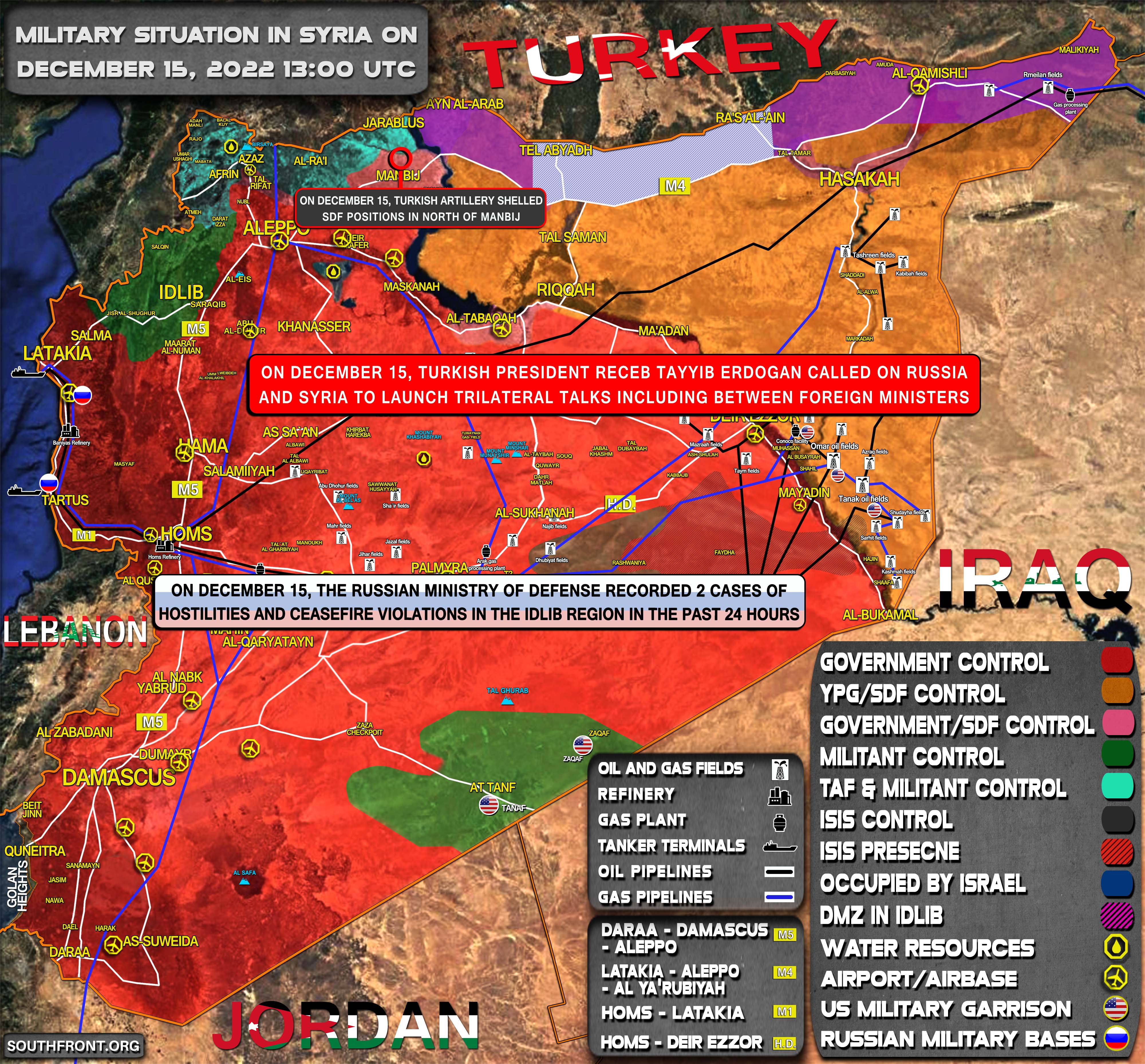 Vojenská situácia v Sýrii 15. decembra 2022 (aktualizácia mapy)
