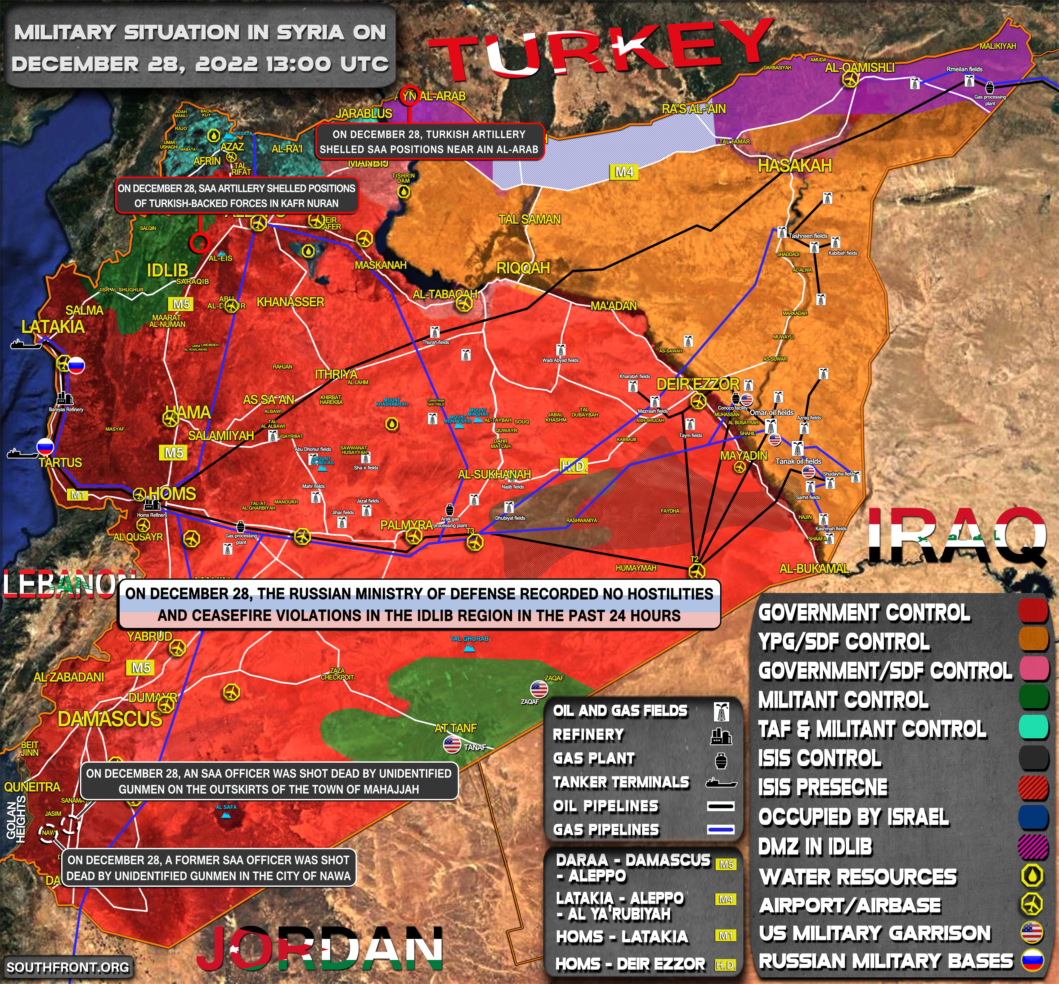 31. decembra delostrelectvo SAA ostreľovalo pozície síl podporovaných Tureckom v Kafr Nouran;