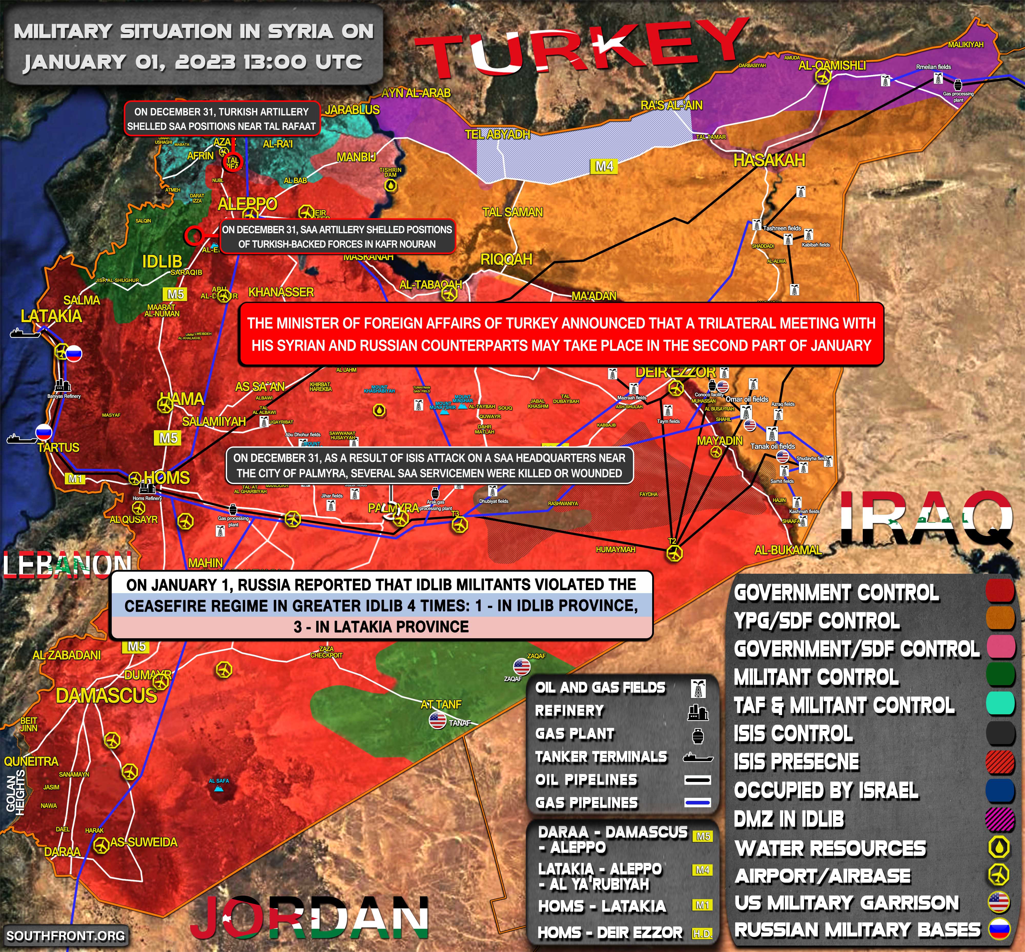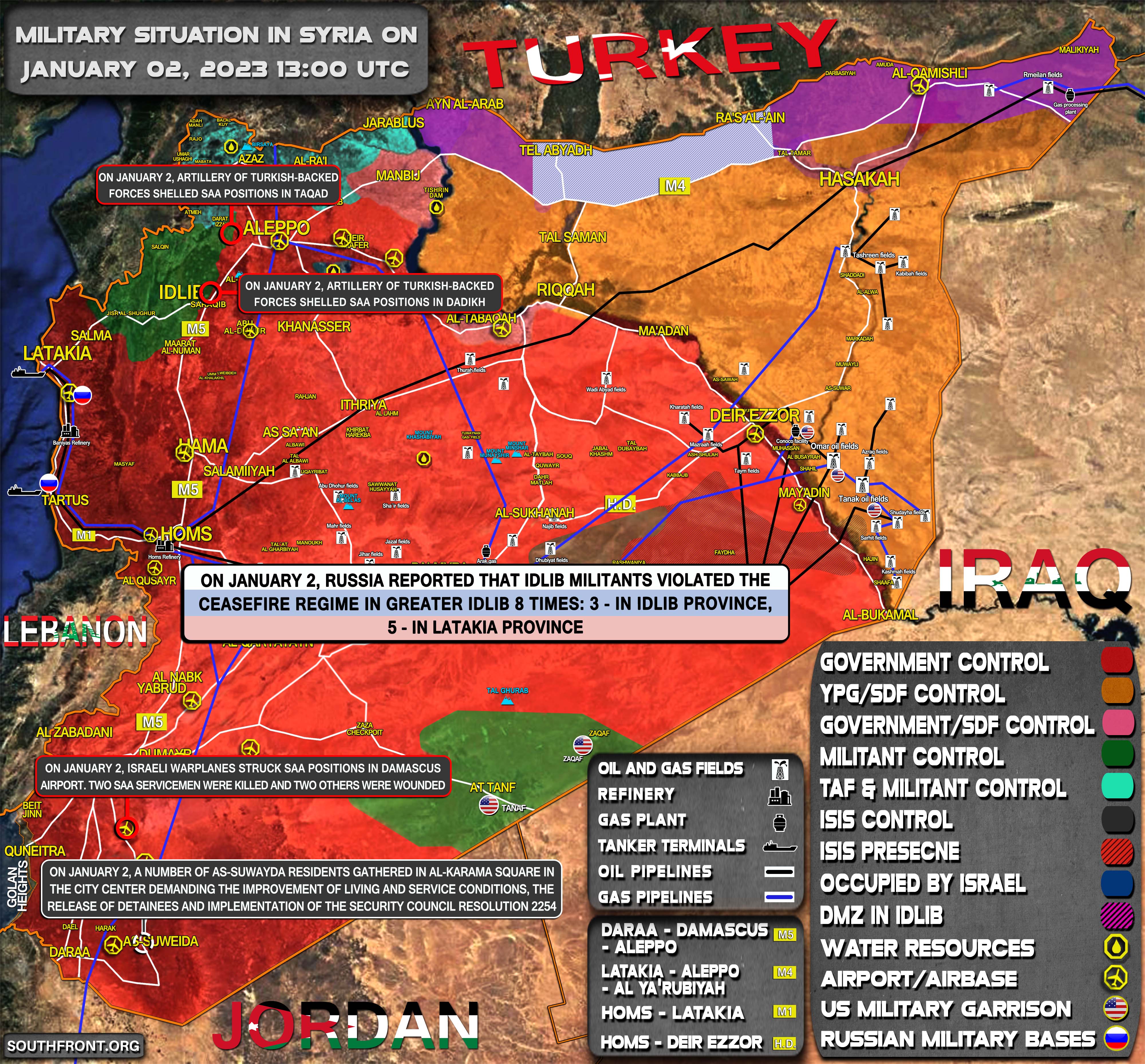Vojenská situácia v Sýrii 2. januára 2023 (aktualizácia mapy)