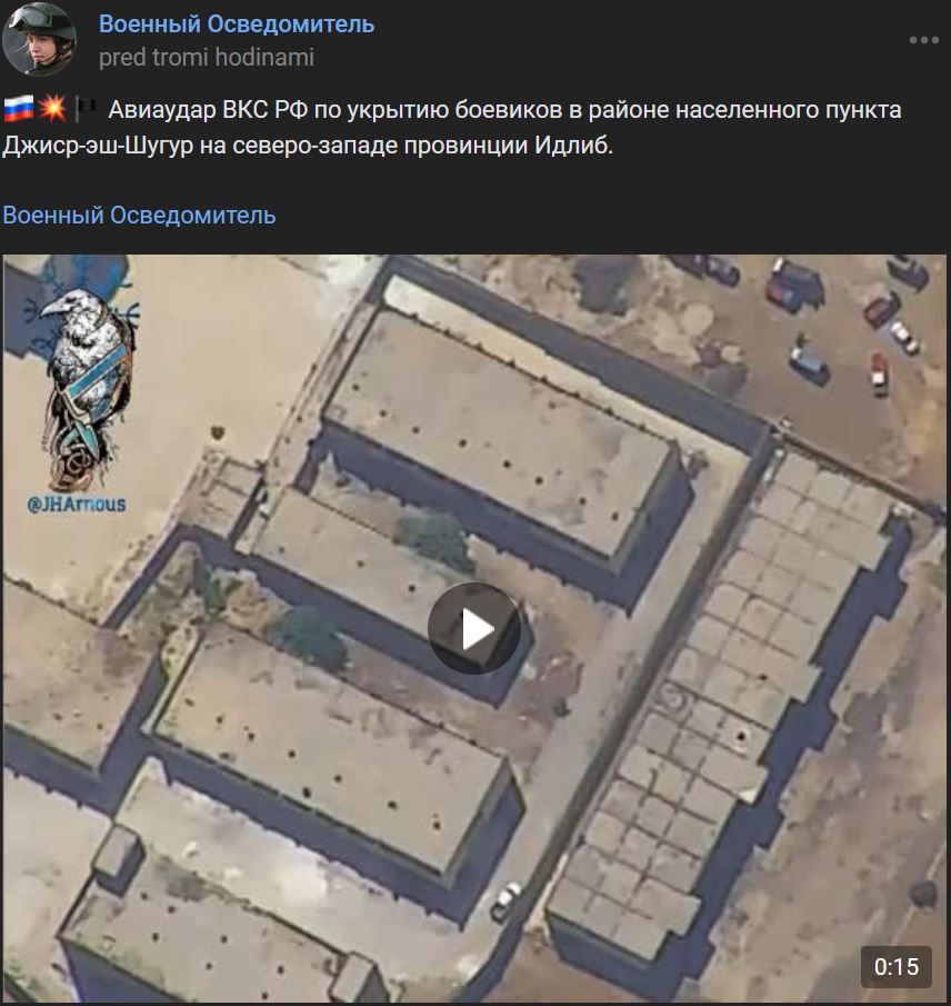 + Letecký útok VKS RF na úkryt militantov pri meste Džisr aš-Šugúr v severozápadnej provincii Idlib.
