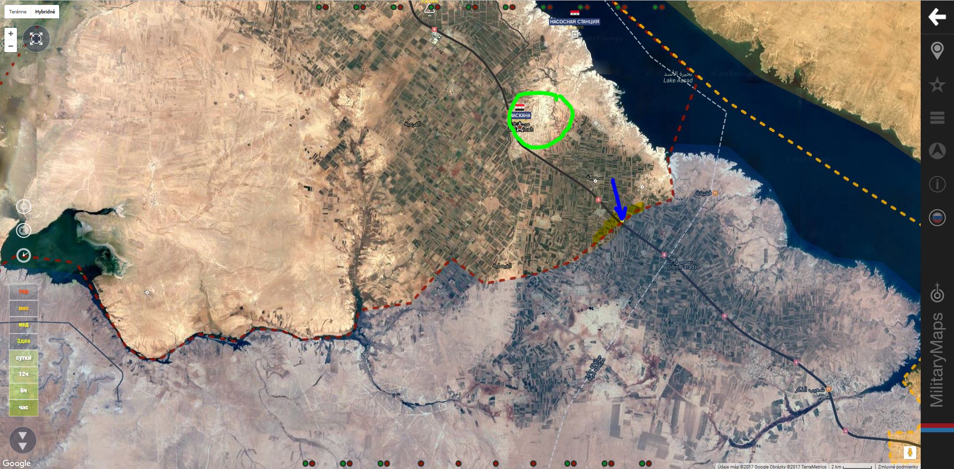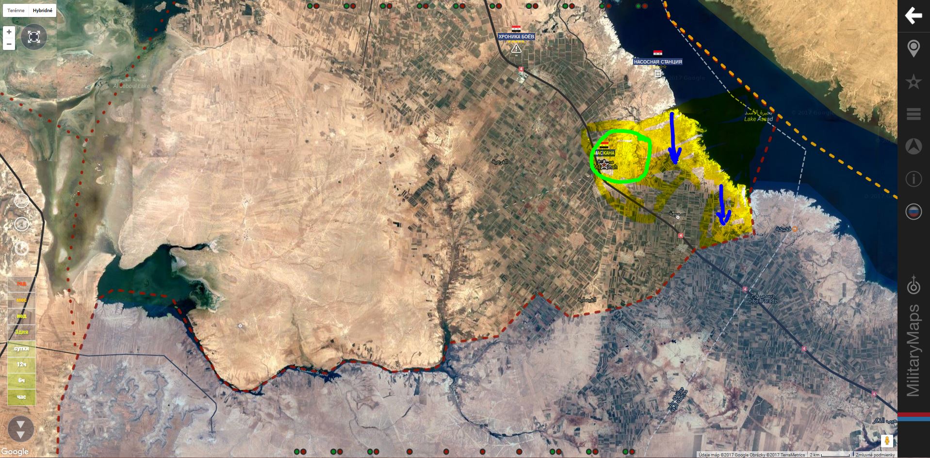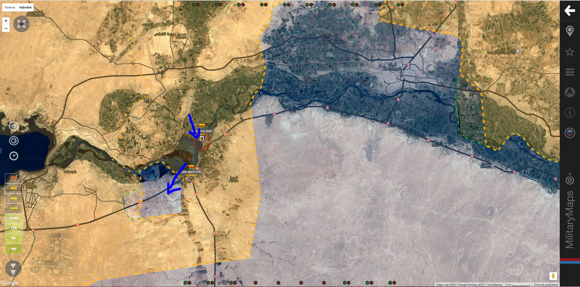Maskanah. Podľa Militarymaps ešte obkľúčenie hotové nie je, SAA+ len preťala cestu na Rakká. SAA+ získala zo severu Rasm Ghazal. Fajsaliu, Umm Rajal, Al Namiju na juhu.