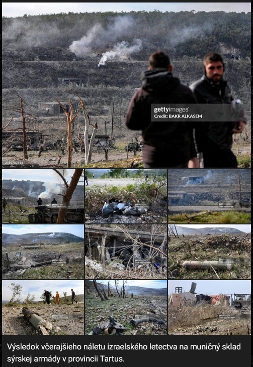 Výsledok náletu izraelského letectva v pondelok 16.12.2024 na muničný sklad sýrskej armády v provincii Tartus.