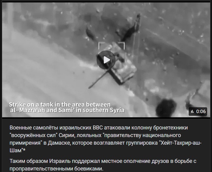 Vojenské lietadlá izraelského letectva zaútočili na konvoj obrnených vozidiel sýrskych „ozbrojených síl“ lojálnych „vláde národného zmierenia“ v Damasku, na čele ktorej stojí skupina „Hajt Tahrír aš-Šám“.