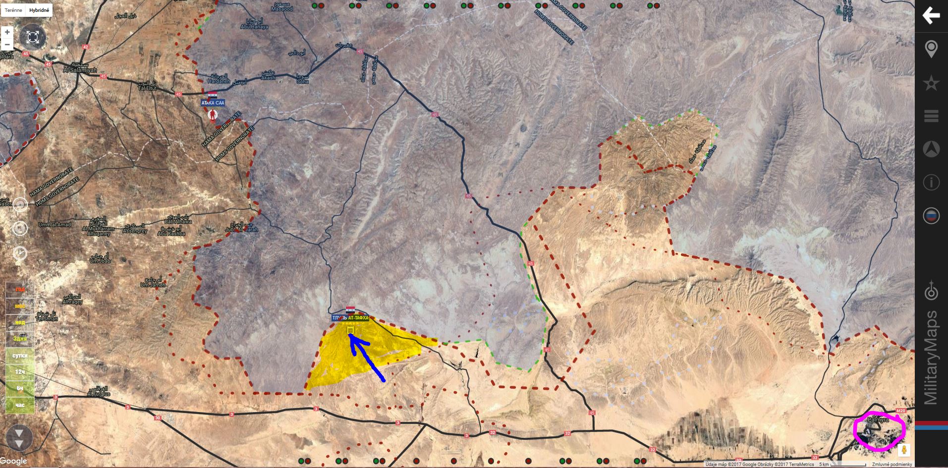 Syrská arabská armáda (SAA) pokračuje v ofenzívě vedené východně od Homsu až k městu Deir ez-Zor. Podle vojenských korespondentů Inside Syria Media Center bylo dosaženo pokroku na četných úsecích fronty.