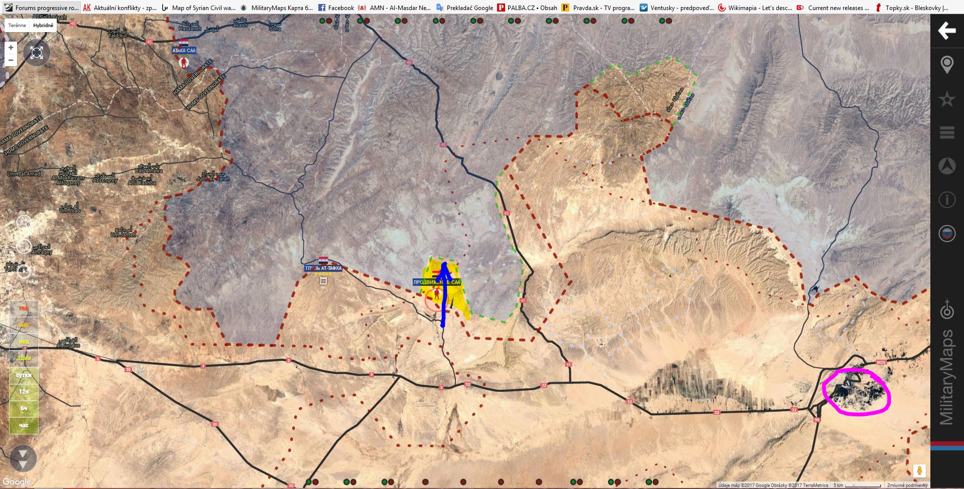 V. Homs. SAA+ získala hornatú časť krajiny okolo Tlul Al Tafcha