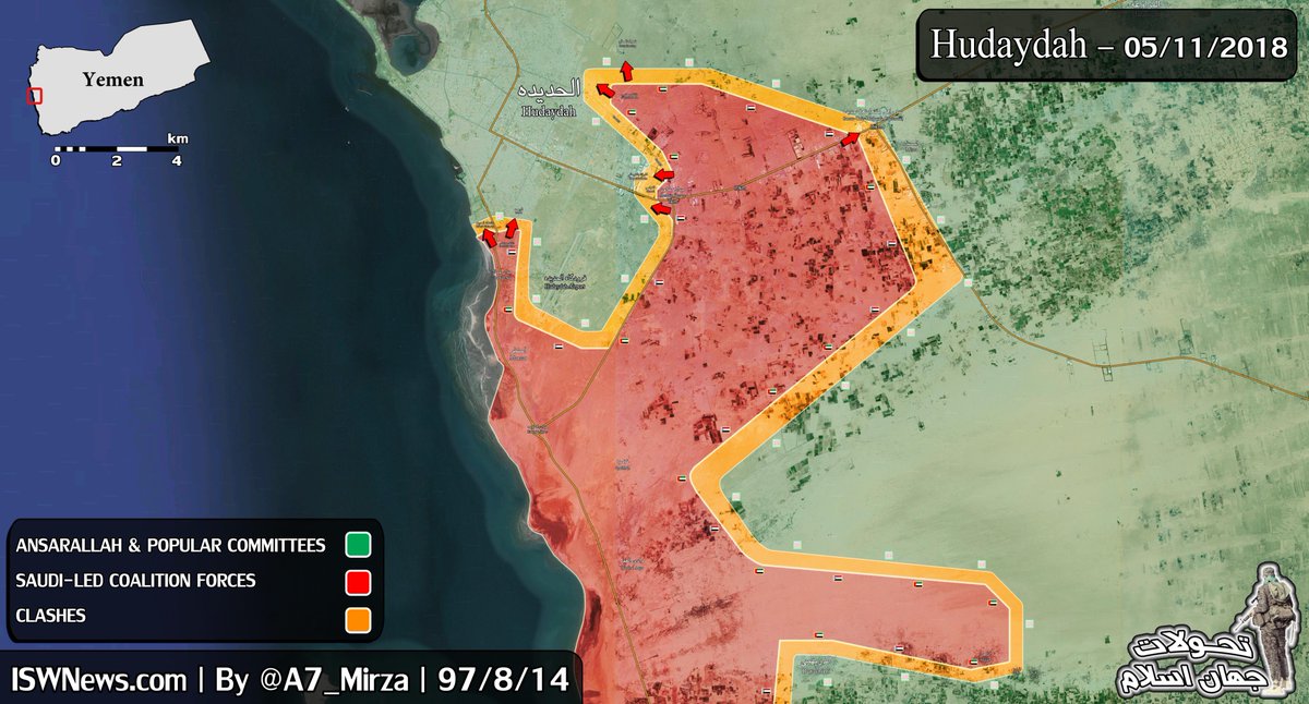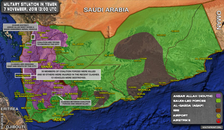 8. listopadu 2018. Vojenská situace v Jemenu. Nový koaliční útok na Hútíe v Hudajda