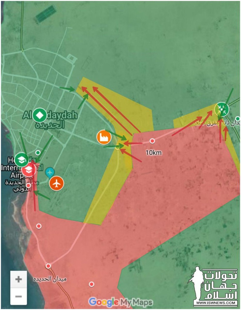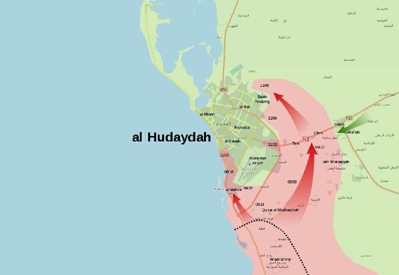 Jemenské jednotky a jejich spojenci spolu s podporou koalice dokončují obklíčení města Al-Hudajda, ovládaného Hútii