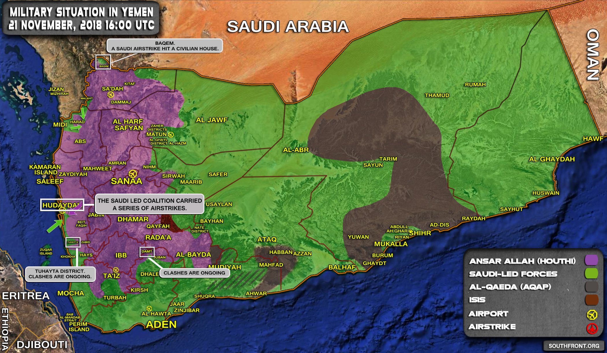 Vojenská situace v Jemenu dne 13. listopadu 2018