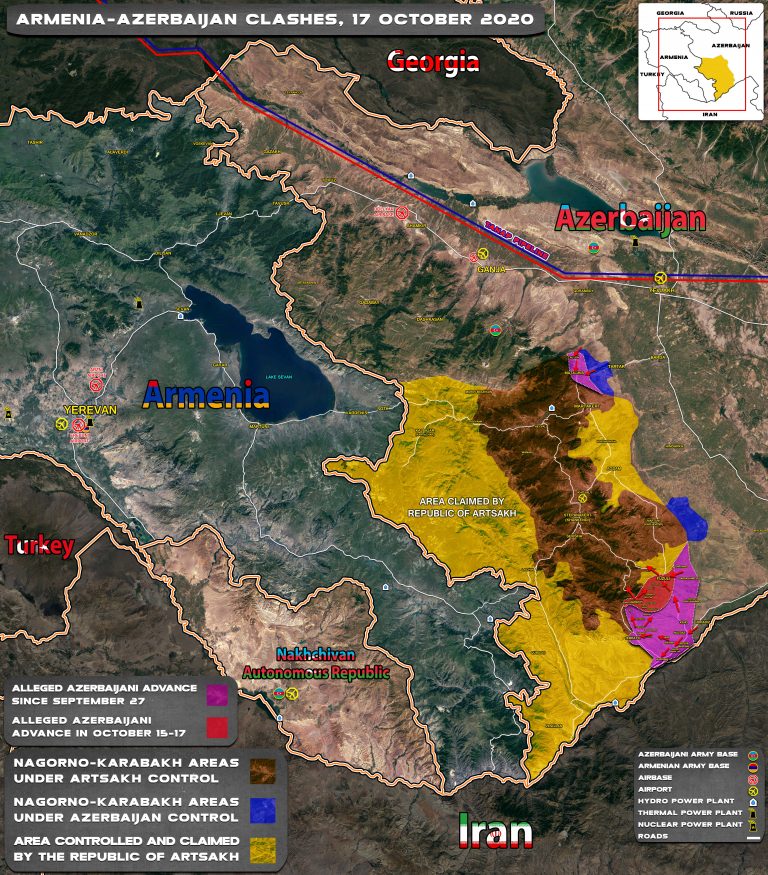 Soudě podle přicházejících informací se při protiútoku Arménů poblíž Zangelanu nestalo nic významného. I když dělostřelectvo způsobilo vážné škody Ázerbajdžáncům, pěchota a obrněná vozidla nemohly dosáhnout ničeho významného, spadaly pod masivní dělostřelectvo a MLRS, stejně jako údery dronů. U Zangelanu tedy nebylo obklíčení Ázerbajdžánců. Nyní nejen kontrolují Zangelan, ale také kontrolují sousední vesnice. Ázerbajdžánci si také udržují kontrolu nad vesnicí Khanlyk, která je důležitá pro rozvoj operací poblíž Zangelanu a obsazení posledního kusu území poblíž hranic s Íránem, které by mělo být v příštích 3–5 dnech (maximálně týdně) zcela pod kontrolou a dosáhnout hranic s Arménií. Zároveň, Ázerbajdžán zkoumá obranu Arménů ve směru Kubatly a Lachinského koridoru. Arméni zde musí odolat, pokud plánují vážně bojovat dále. Je možné poznamenat, že podobnosti s příběhem Afriky pokračují - území se postupně ztrácí, deklarované protiútoky nepřinášejí úspěch a volání o pomoc světovému společenství nepřináší výsledky. Arménie musí něco změnit, pokud nechce šlápnout na africké hrábě.