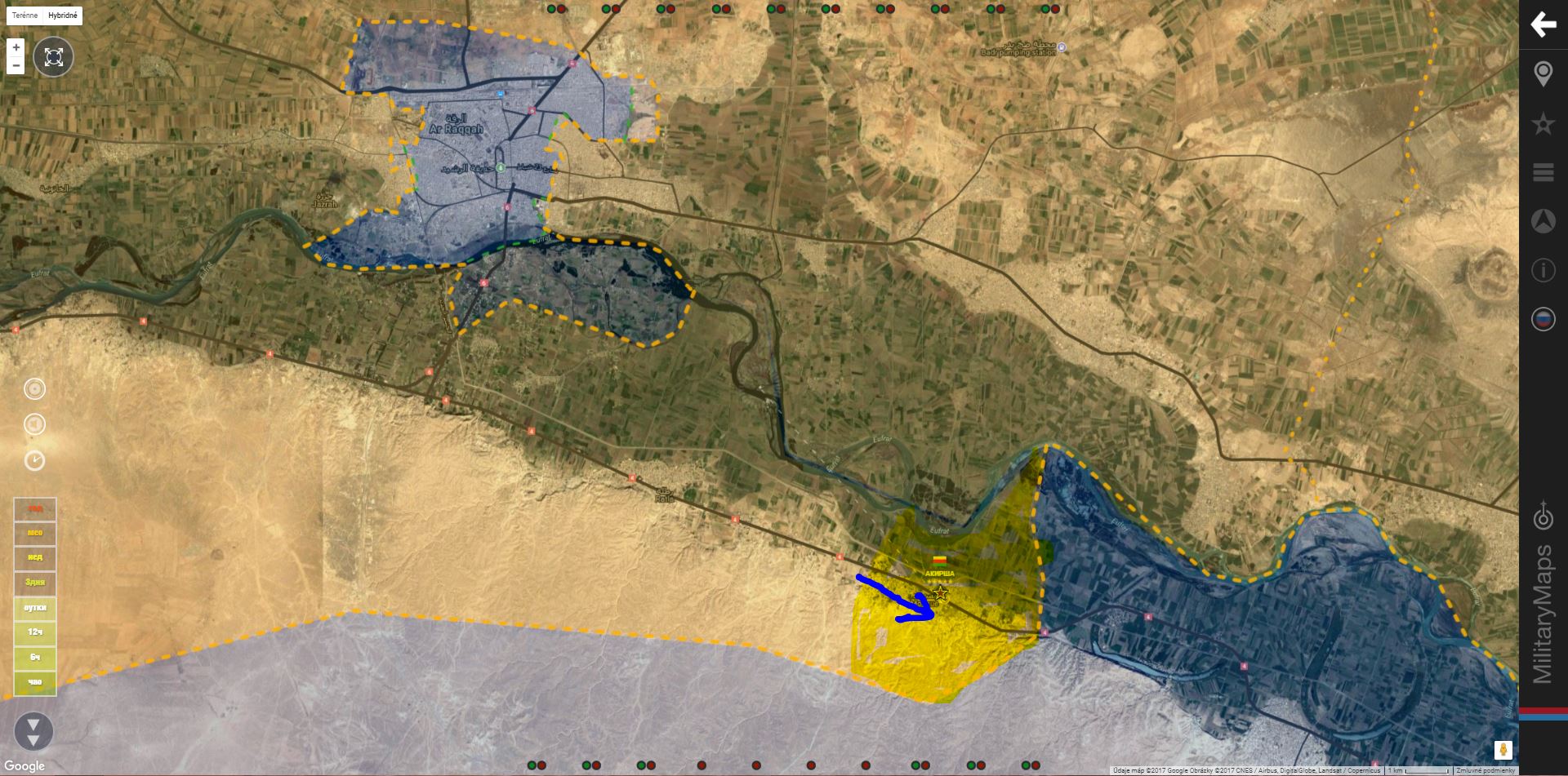 https://twitter.com/A7_Mirza/status/884424399675428867Aktualizácia mapy podľa MiliearyMaps, včera:IgorT píše: ↑10 črc 2017, 14:47SAA+ je "v laufe", získala ďalšie územie (Risha dam & hill, Jabal Makhoul, Bīr Makhoul & Sees mountain )IgorT píše: ↑10 črc 2017, 12:54SAA+ vrazila do územia rebelov obsadením Jabal Sis, Tel Makhoul a Tel SidrišaIgorT píše: ↑10 črc 2017, 12:18Daraa. SAA+ udrela SV od mesta a získala územie od Tlul Salman na severe po Tel Saad na juhu.