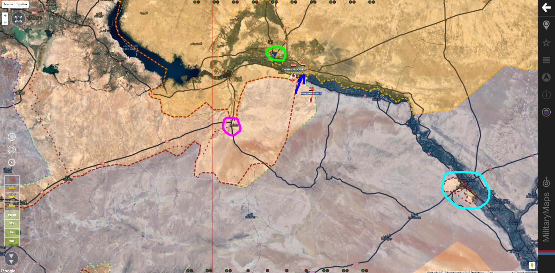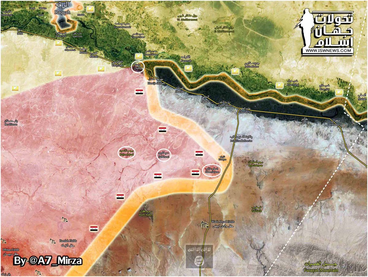Resafa, Rakká, Deir Ezzorr, aktuálne. SAA+ sa dostala k južnému brehu Eufratu, obsadila Dahilu.