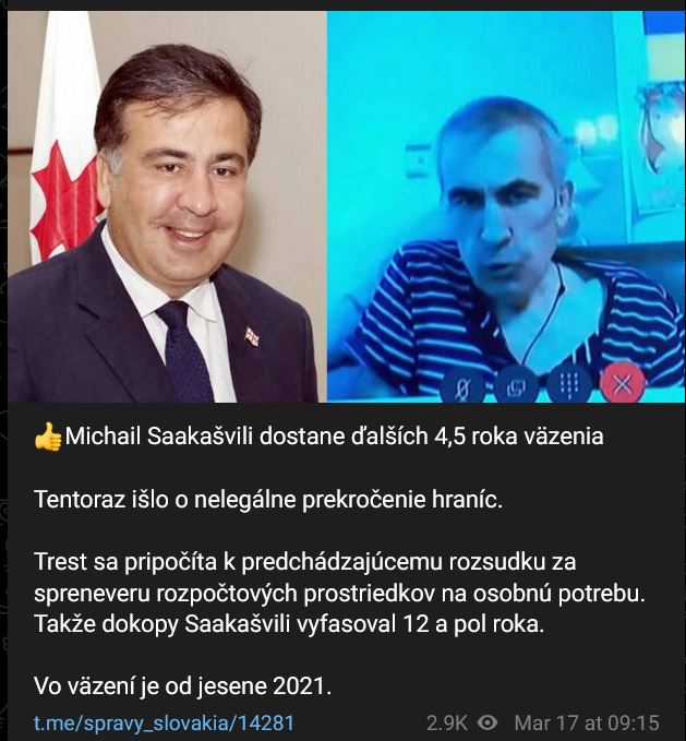 Tentoraz išlo o nelegálne prekročenie hraníc. Trest sa pripočíta k predchádzajúcemu rozsudku za spreneveru rozpočtových prostriedkov na osobnú potrebu. Takže dokopy Saakašvili vyfasoval 12,5 roka. Vo väzení je od jesene 2021.