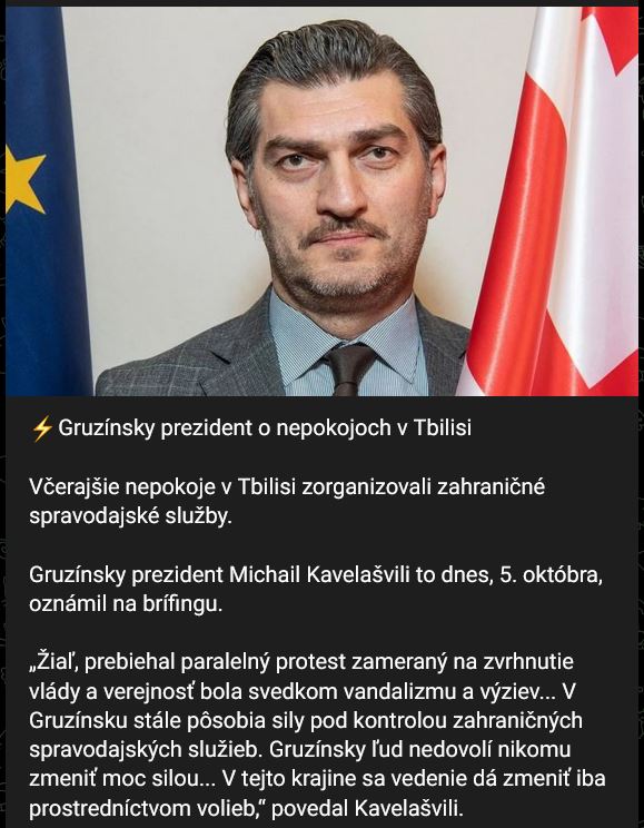 Včerajšie (sobota 04.10.2025) nepokoje v Tbilisi zorganizovali zahraničné spravodajské služby.