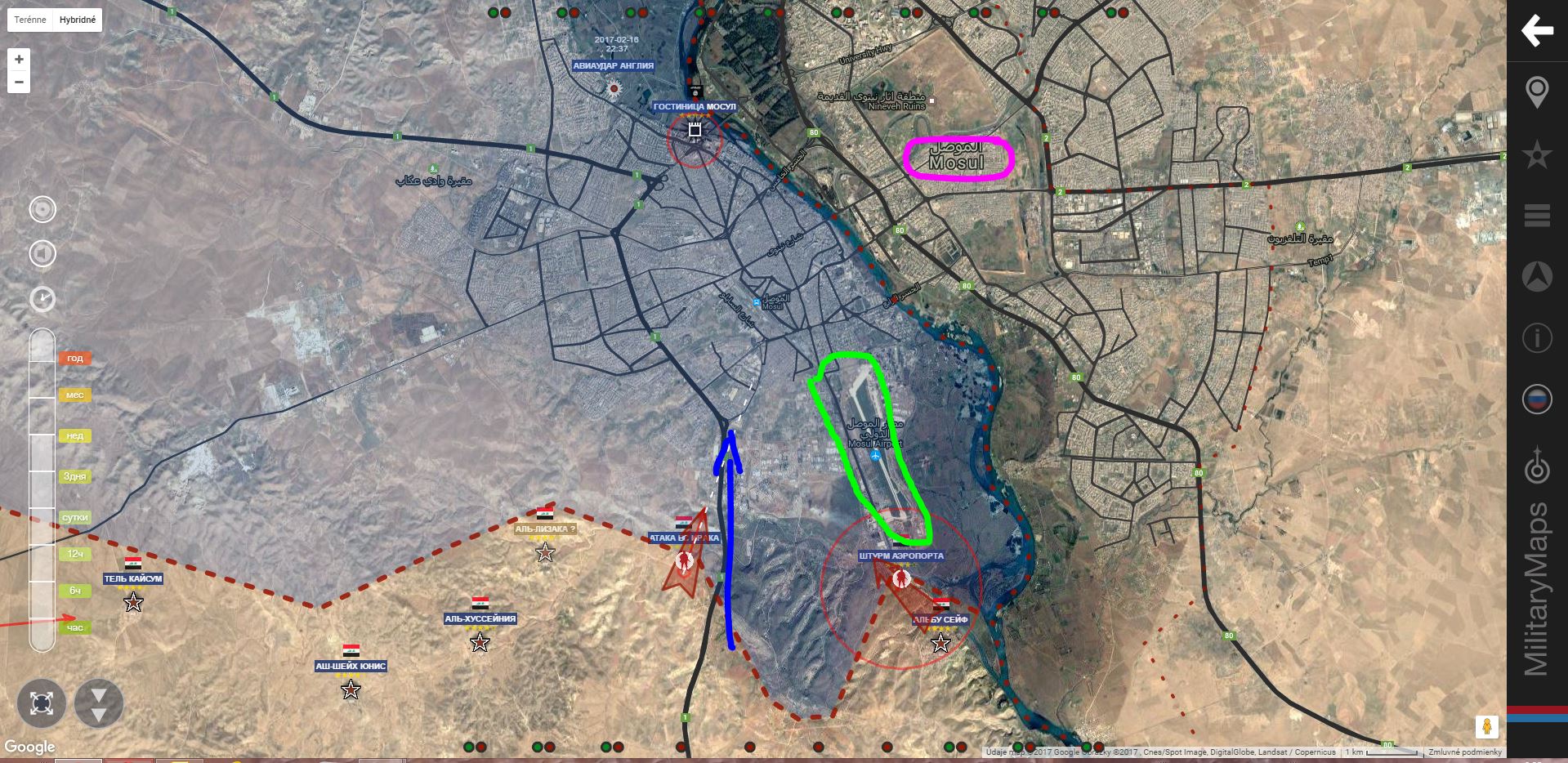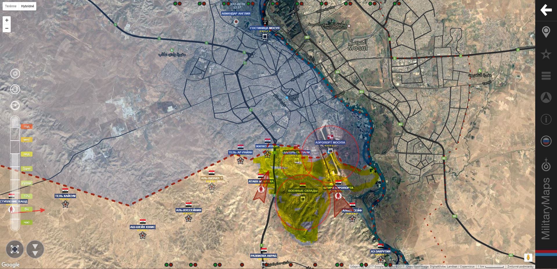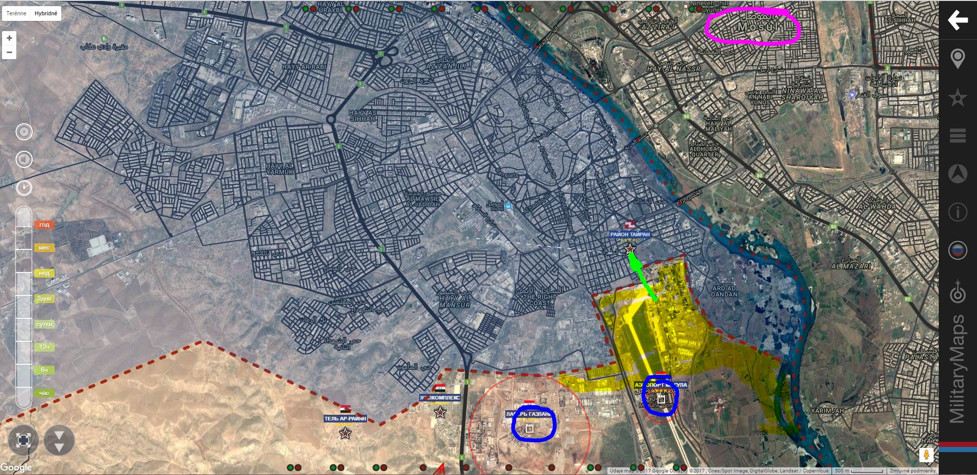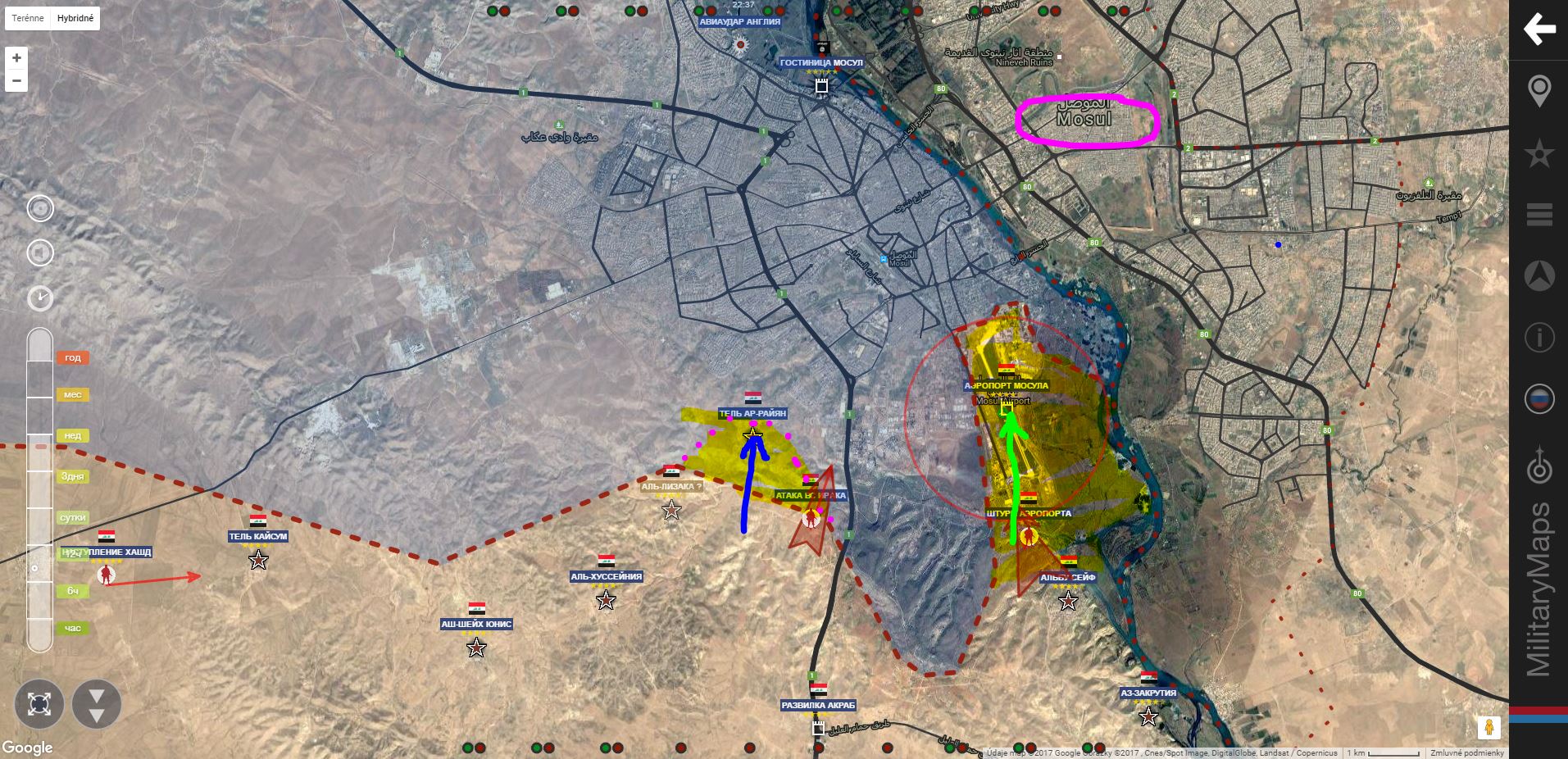 Mosul. IA+ obsadila štvrť Havi Al Jausak, útočí na: zľava Tel Raman, Al Mamun a Tajran.