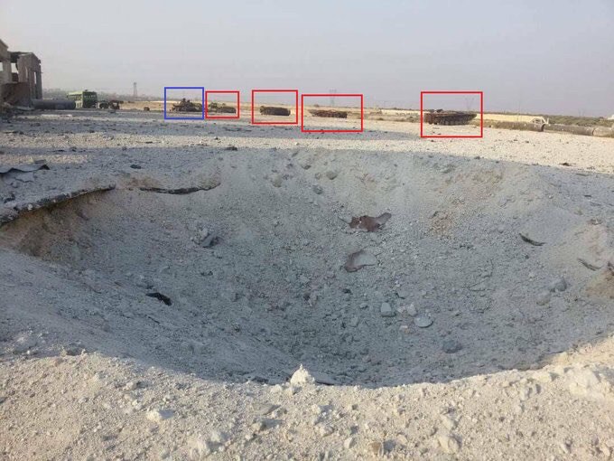 V důsledku ruského leteckého útoku v Nayrab, provincie Idlib, bylo zničeno 5 vozidel BVP-1 a 1 tank ozbrojenců Hyatt Tahrir Ash Sham