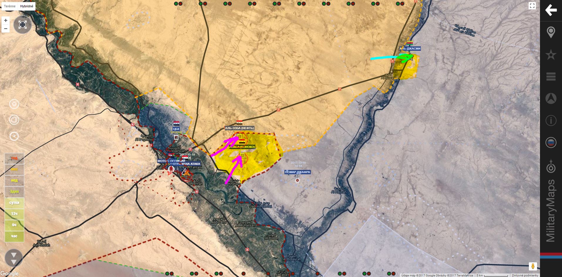 Podľa jedného reportéra z Ruska dnes vojaci sýrskej armády dosiahli okraj Al-Omar Oil Field len pred chvíľou, keď predtým prešli na východný breh rieky Eufrat, oproti mestu Al-Mayadeen a obsadili mesto Zebán.