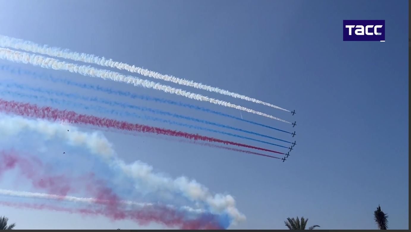 ▪️ Vladimíra Putina privítali na letisku v Abú Zabí. Na počesť príchodu ruského prezidenta bola obloha vymaľovaná vo farbách ruskej trikolóry