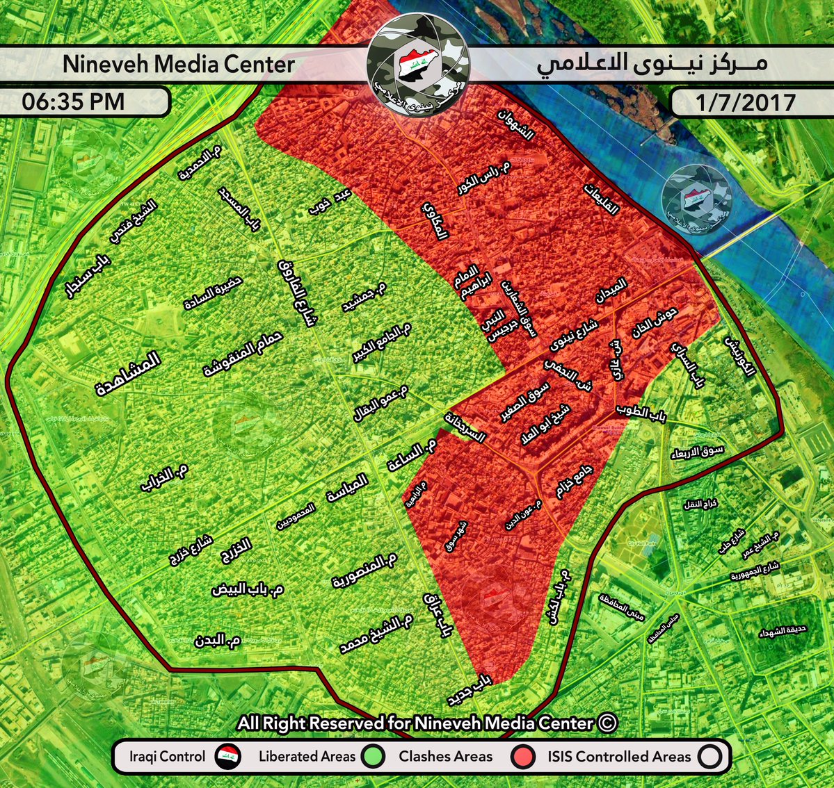 Radikálové z IS, kteří druhé největší irácké město Mosul obsadili v červnu 2014, mají stále pod kontrolou zhruba polovinu starého města. Zbytek historického centra i města Mosulu ovládají irácké vládní jednotky. Bitva o historickou část Mosulu, která leží západně od řeky Tigris, je označována za poslední etapu osvobozování města.