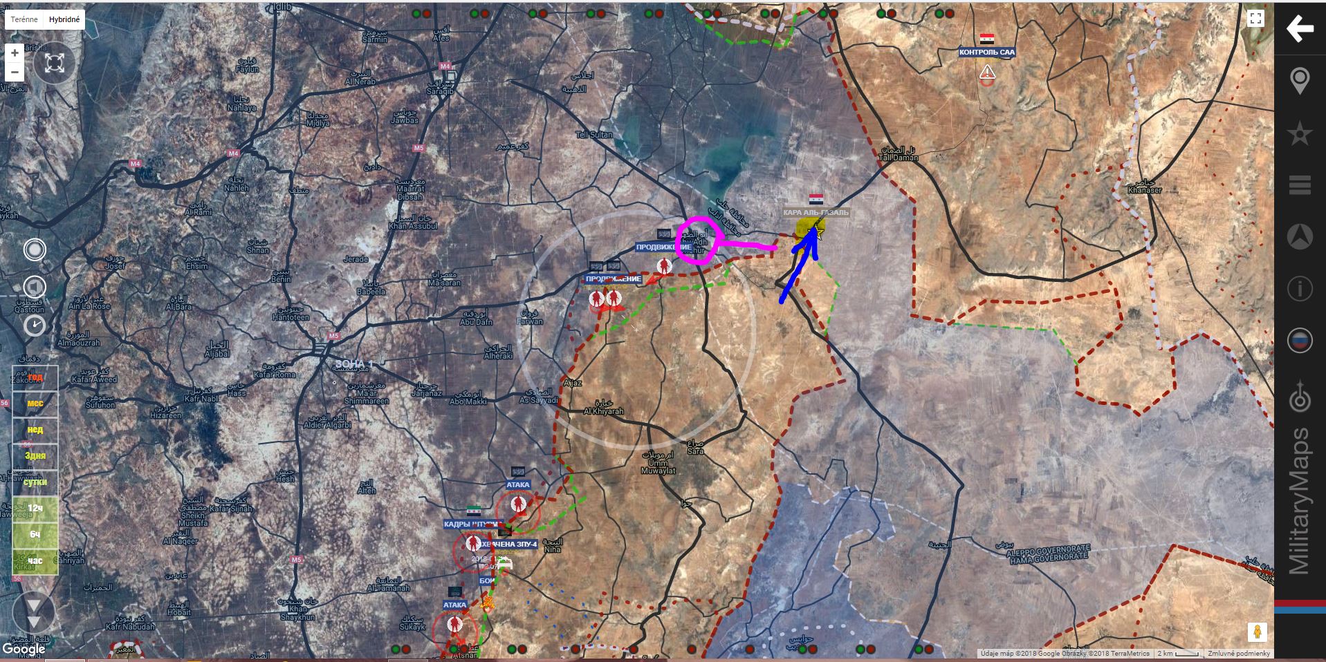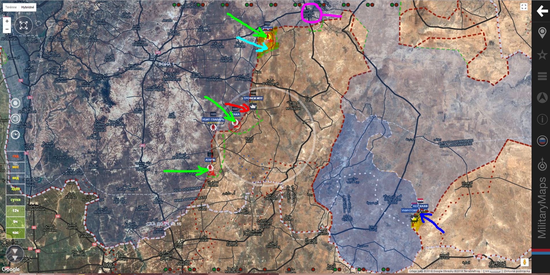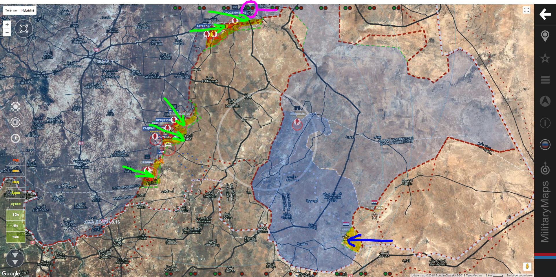 Celá Ruská letka bombarduje severní Idlib. Letecké operace probíhají spolu s bombardováním Hamy. (7h zpět)