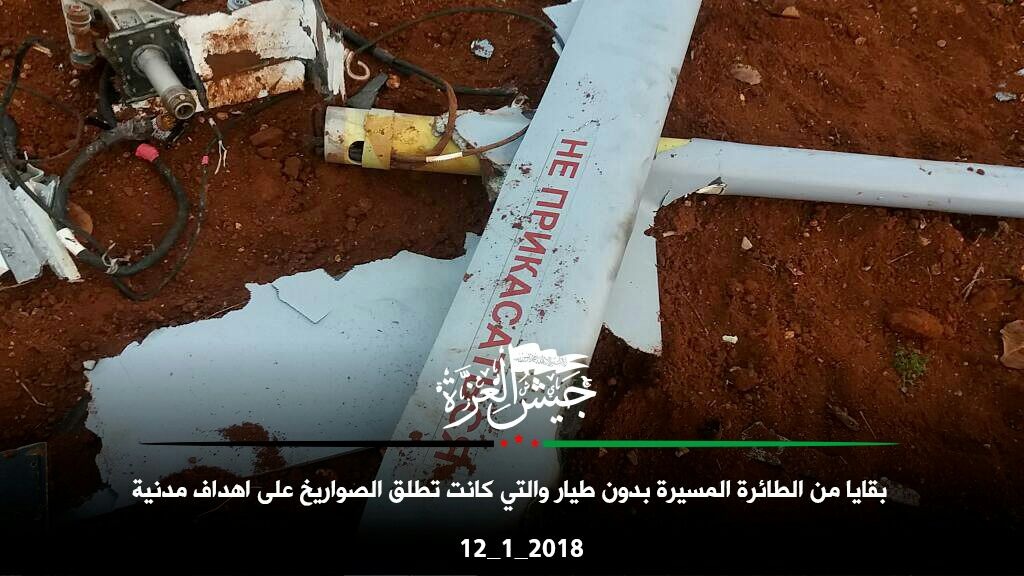V piatok 12.01.2018 bol zostrelený / navaroval (podľa jedných ho zostrelila skupina "al Zinki", druhý tvrdia že havaroval lebo neboli nájdené žiadne diery po guľkách) ruský bezpilotný prieskumný stroj Forpost (licenčne vyrábaný Izraelský IAI Searcher) v južnej časti provincie Idlib / v severnej časti provincie Hamá