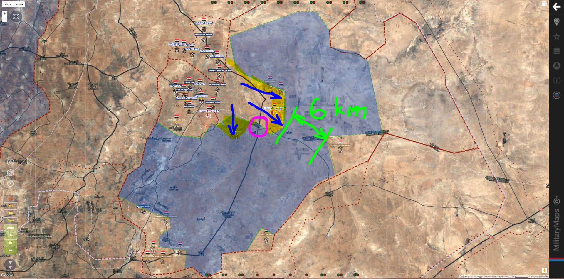 Uskupení syrské arabské armády vytlačilo teroristy "islámského státu" z prostoru: Abu Hilal, Rasm Taval, Ad-Dabahin, Wadi Jahannam a Muwaylikh Shimali na severu provincie Ham a také z osad Abu Dureyha, Maslah, Umm Ibba, Umm-Adj, Al-Kharash, Al-Suleijah a Mureijib al-Suleijah v jižních provinciích Idlib a Aleppo