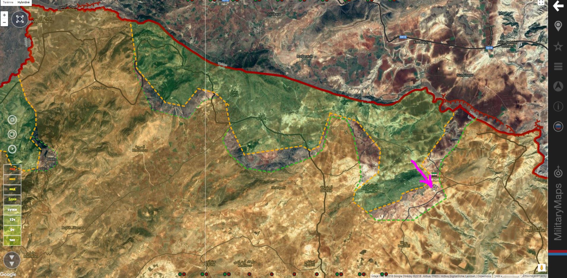 Afrin, situace podle sil "Olivová Ratolest" z 12.2.2018.