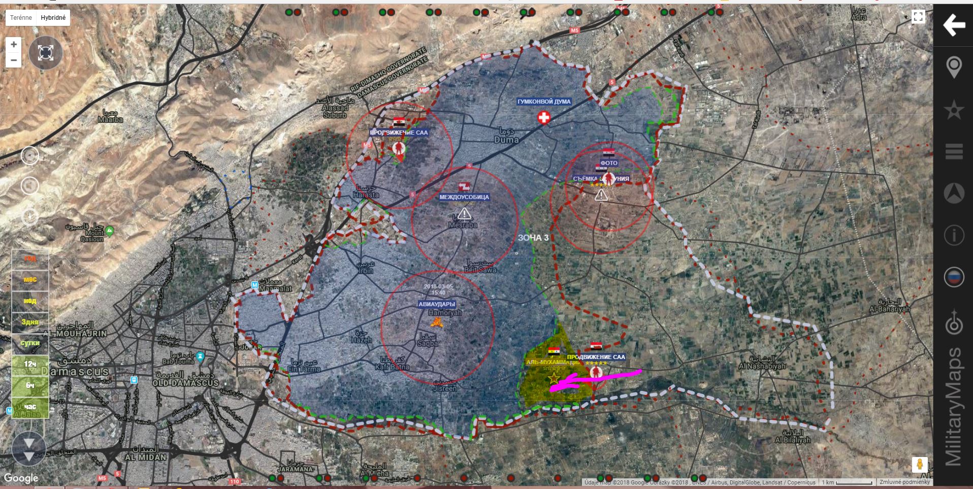 5. března 2018. Vojenská situace v Sýrii. Syrská armáda prolomila obranu militantů ve východní Ghoutě