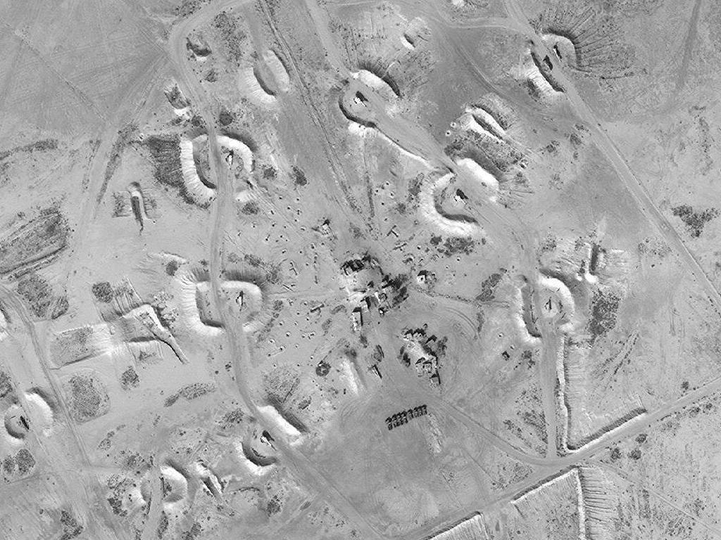 Pozice syrských systémů ZRK S-200VE na východě Damašku před (6. února 2018) a po (19. února 2018) zničení F-16 izraelského letectva.