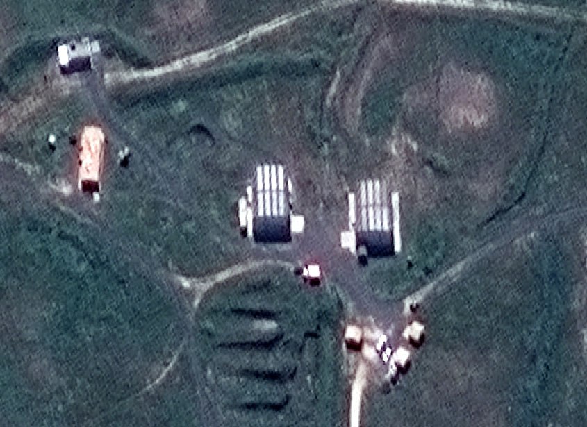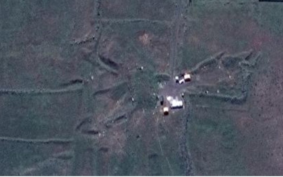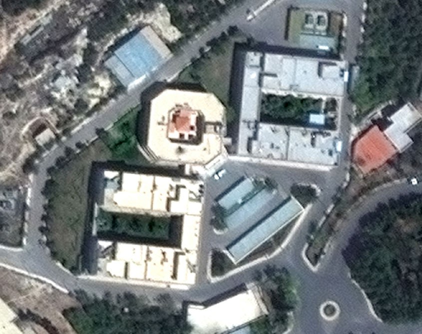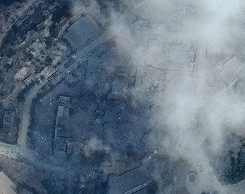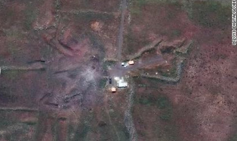 Fotografie z vrchu na výzkumný komplex v Barzár. Podle Pentagonu po dopadu 76 křídlatých střel (každá s bojovou hlavicí o váze 450kg, celkem tedy ~34,2 tun)