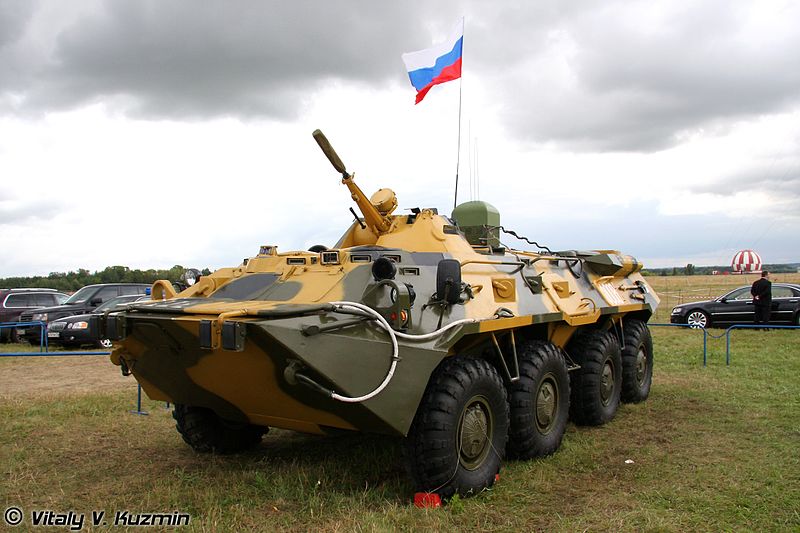 Na Syrském expressu se veze BTR-80 z rušičkou Pelena 6