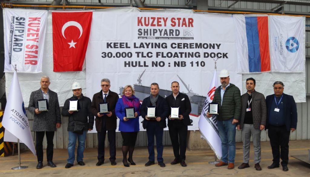 Turecká lodenica Kuzey Star založila kýl plávajúceho doku pre ruský A-ľadoborec projektu 22220 V utorok 15.03.2022 sa v lodeniciach Kuzey Star Shipyard Denizcilik Sanayi ve Ticaret Anonim Sirketi v Istanbule (Turecko) uskutočnilo slávnostné položenie kýlu plávajúceho doku pre univerzálne A-ľadoborce projektu 22220 "Arktika". Na podujatí sa zúčastnili aj zástupcovia spoločnosti Atomflot (Атомфлот). Podľa podmienok zmluvy bude výstavba vrátane dodania plávajúceho doku do prístavu Murmansk (Мурманск) trvať 29 mesiacov (do 15.08.2024). Zmluva bola podpísaná 07.06.2021 na 4,981 miliardy rubľov, plávajúci dok bude mať nosnosť 30 000 ton, maximálna dĺžka nákladu najmenej 220 m; dĺžka na palube najmenej 200 m, maximálna šírka 48 m, výška doku približne 6 m, posádka približne 30 ľudí.