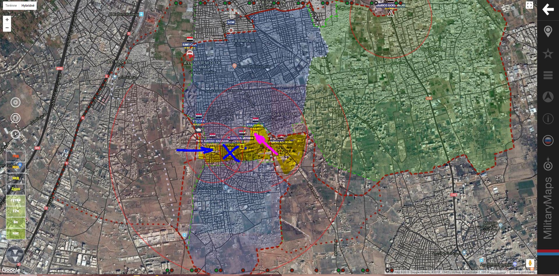 J. Damašek. SAA+ sa v mestských bojoch posunula k township building of Hajar_Aswad a Workers Club of Quneitra.(pokus o ďalšie dlenie enklávy?)
