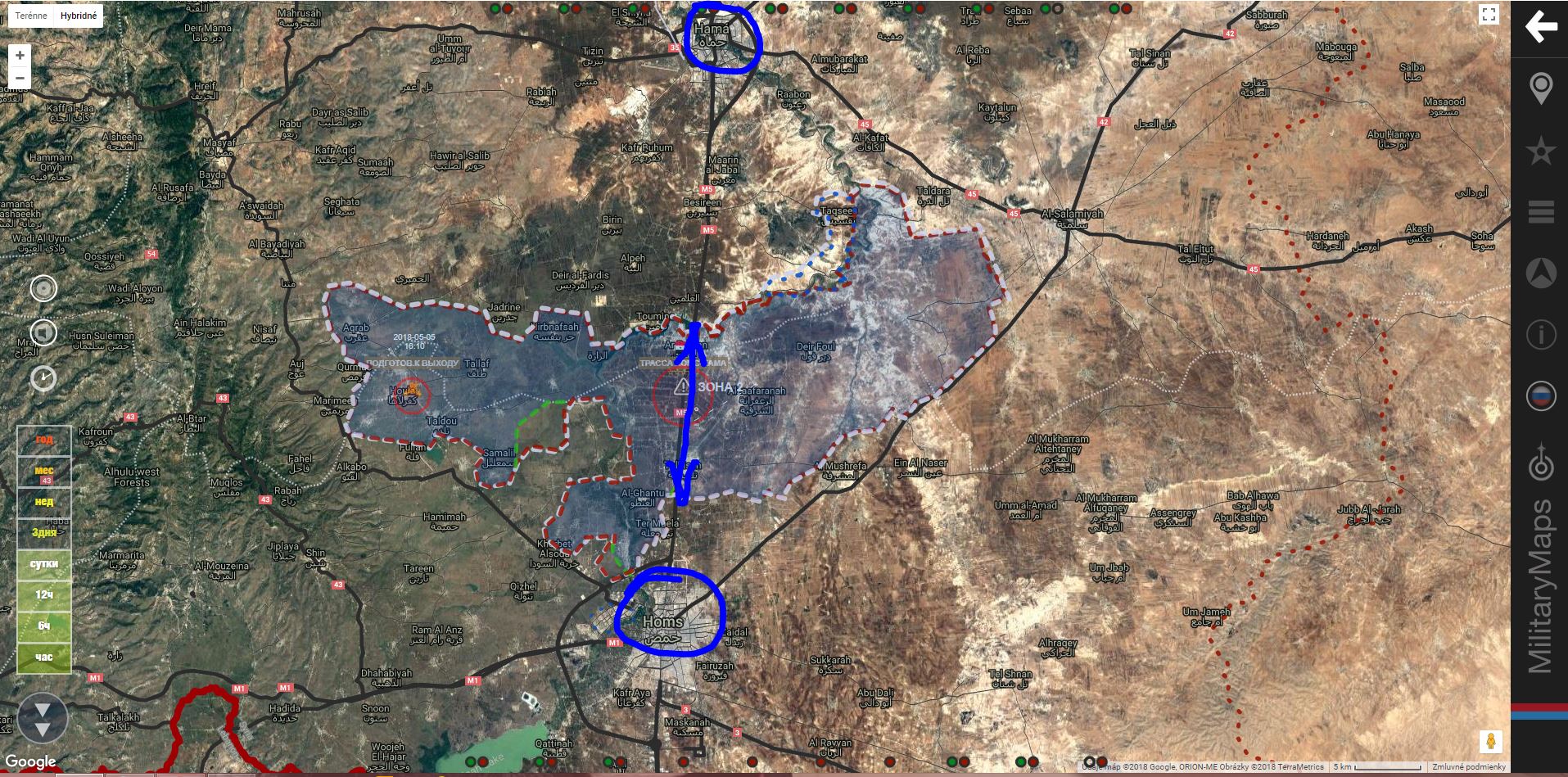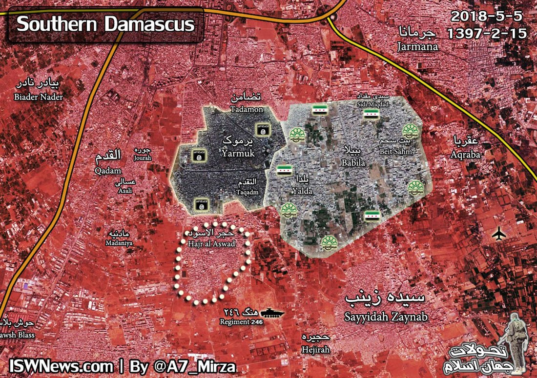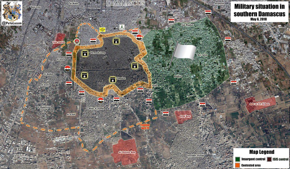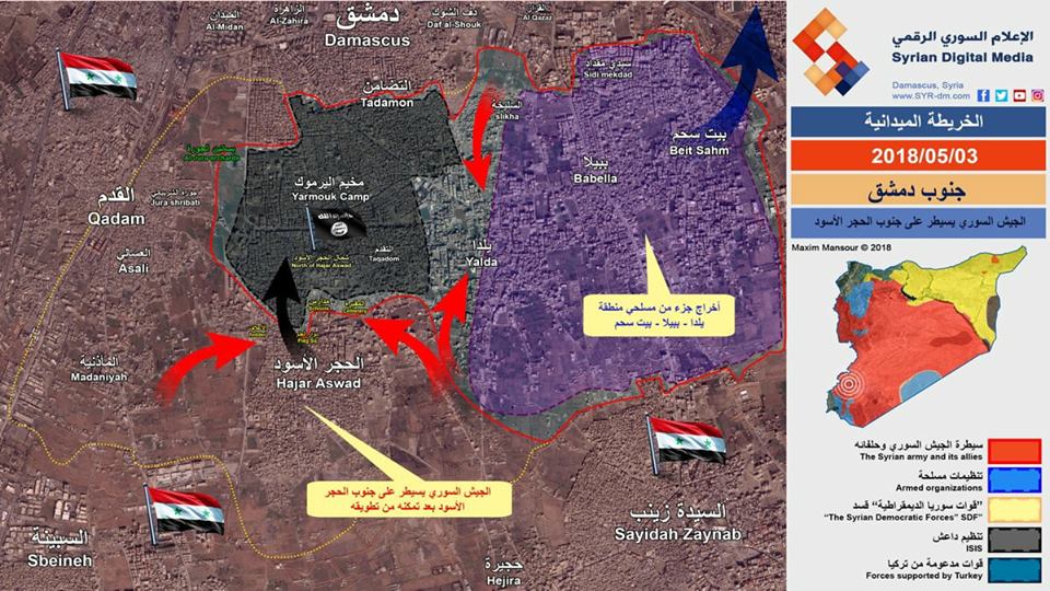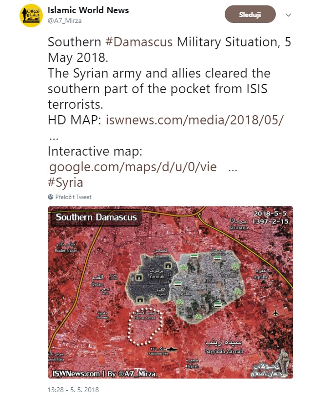 3. května 2018. Vojenská situace v Sýrii. Odsun radikálů a těžké boje s ISIL u Damašku