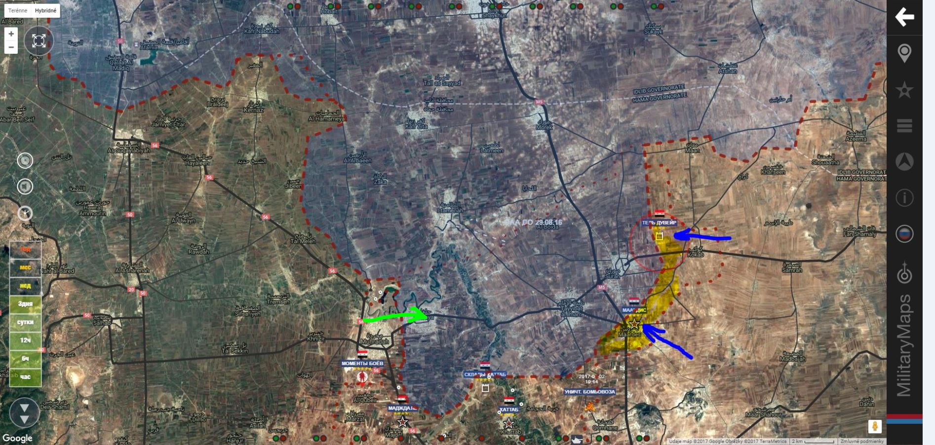 Postup sýrskych vládnych jednotiek podporuje ruské letectvo. V utorok teroristi stratili 25 mužov a 35 mužov utrpelo zranenia, ktoré ich vyradili z boja. V bojoch teroristi stratili aj jeden zo svojích tankov T-72. Viacero tankov získali protiasadovské sily ešte na začiatku konfliktu v Sýrii, kedy mnohí vládni dôstojníci prešli na stranu Asadovej opozície podporovanej Američanmi. Po zlomení bojového potenciálu protiasadovskej opozície mnohé z tankov protiasadovskej opozície získali teroristi z ISIS.