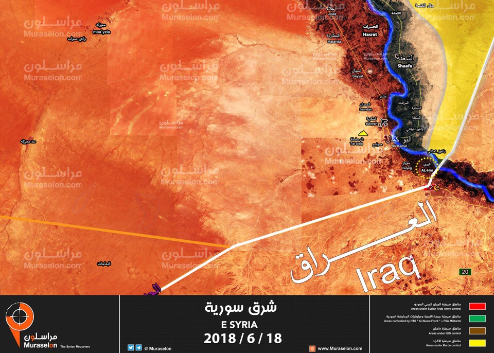 18. června 2018. Vojenská situace v Sýrii. Boje syrské armády a spojenců proti ISIL na jihu Sýrie