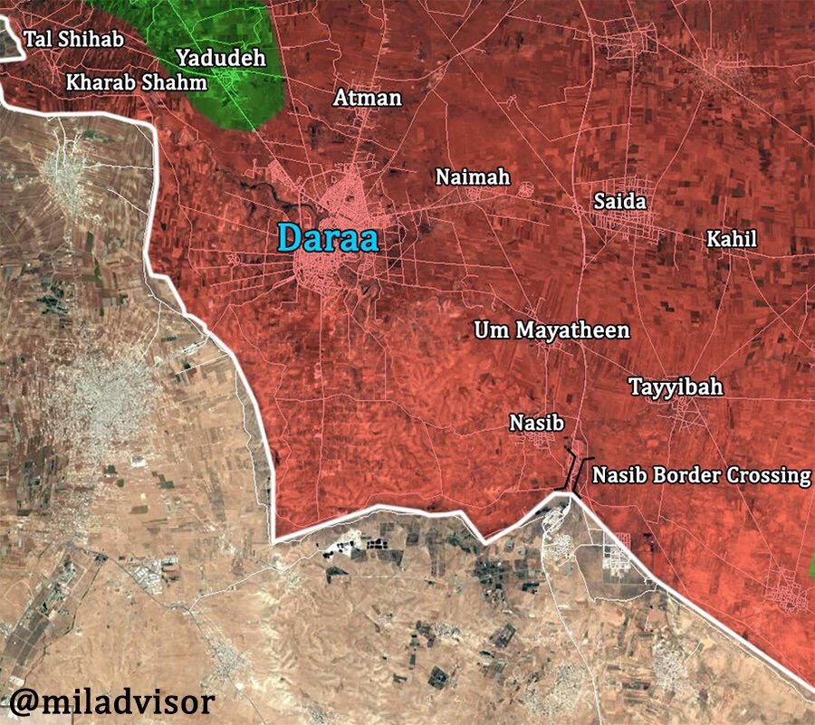 Daraa. SAA+ kontroluje Muzayrib, Kafr Shams a Inkhil.
