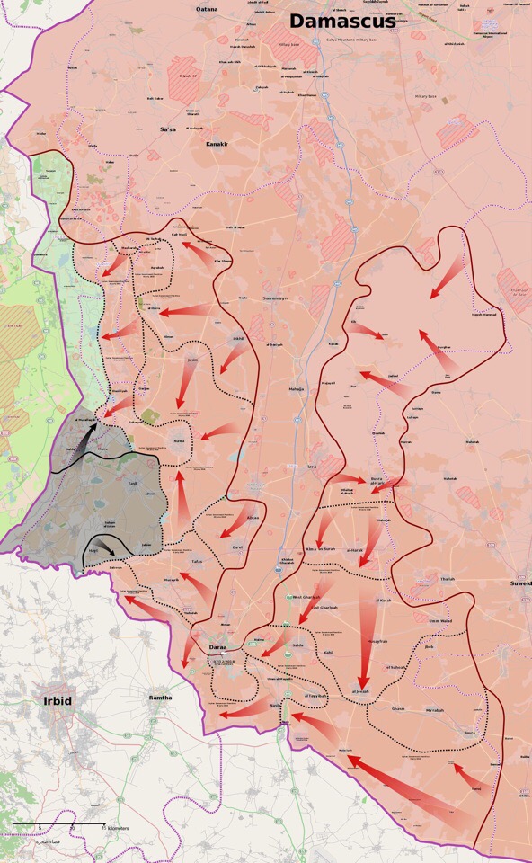 Štyria vrchní velitelia FSA z južnej Sýrie boli evakuovaní do Izraela podľa sýrskej pro-vládného média Damascus Now. Má ísť o Moaza a Abu Rateba Nassaovcov - veliteľov z Brigády golanských rztierov , Ahmeda al-Nahsa - veliteľa brigády Saif al-Sham a Alaa al-Halaki - vodcu al -Ababil armády.