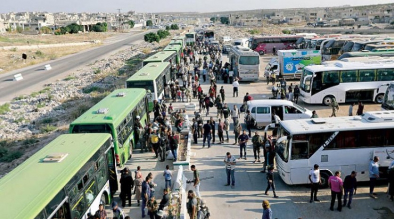 Kunejtra. 20 autobusov prišlo do starej Kuneitry a dediny Kakhtania na odvoz militantov a ich rodín na sever Sýrie.