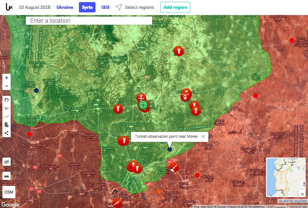Údery jsou vedeny v okresech a osadách Jisr al-Shugur, al-Latamina, Chán Šejchun, al-Taman, Kafr-Zita, Atarib, Urm al-Qurba a Serakib