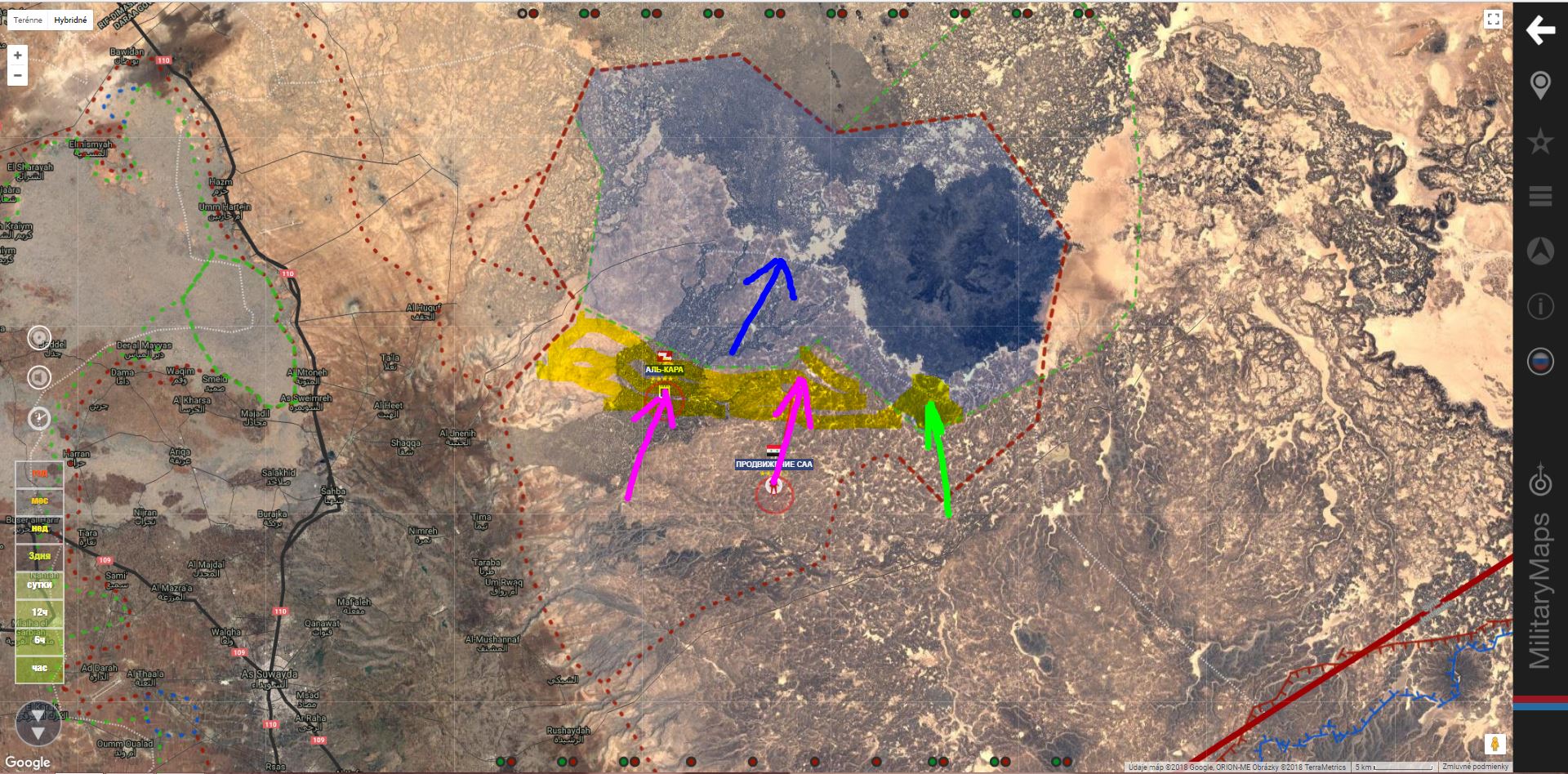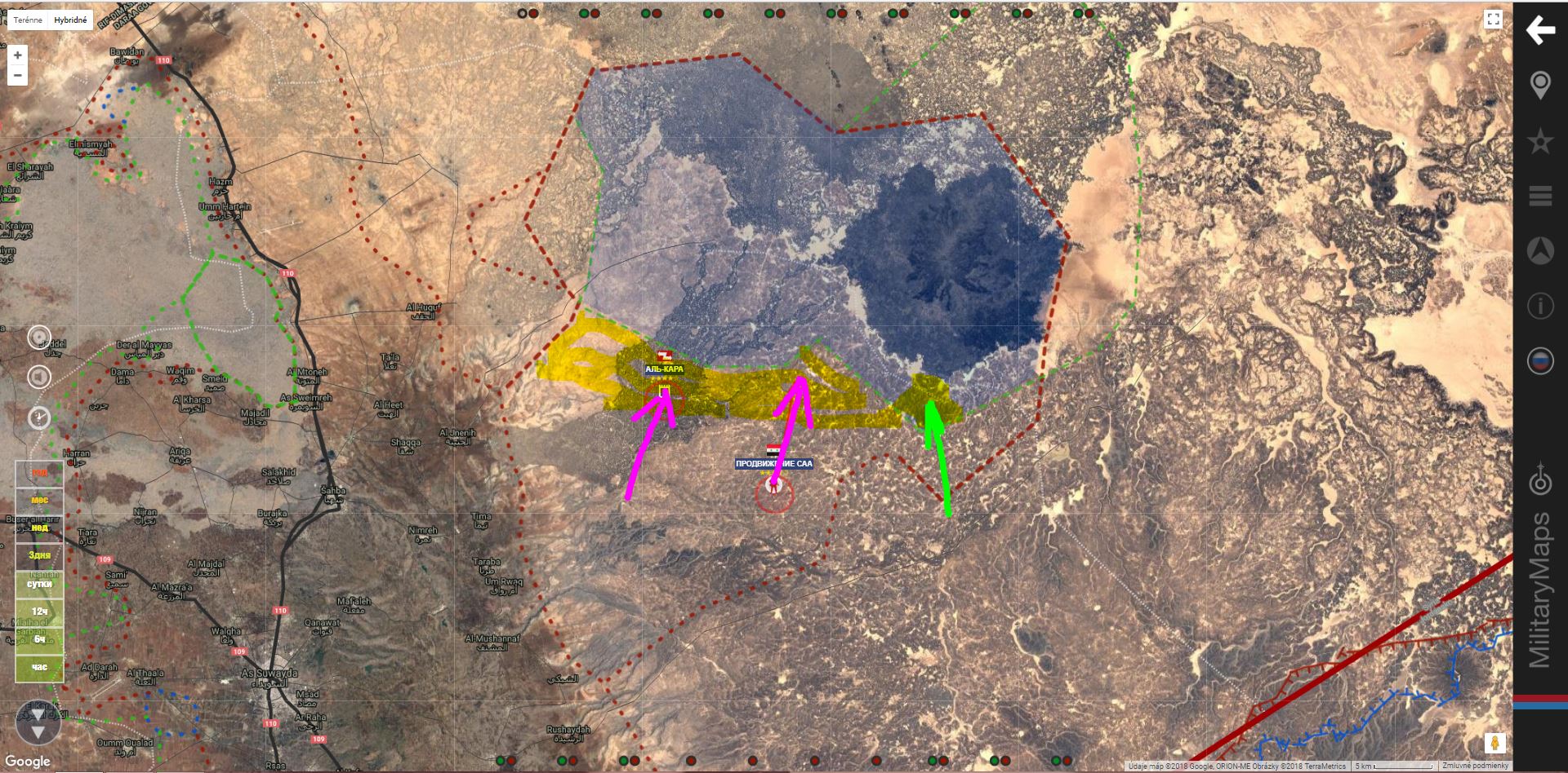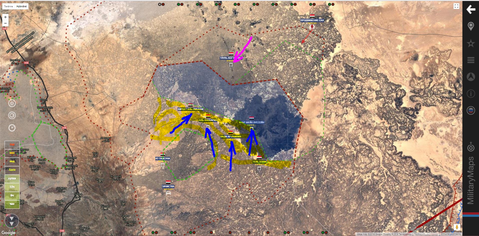Armáda kontroluje Rasm Tahtmuni - Khirbat Umbashi - Tulul Haybariyah - Rasm Murush - Suh Naemat - Zuharat Rashid - Zaribiatan - Khirbat Shahriyat - Wadi Ramlyan - Wadi Sharjat - Zamlat Naser - Nahyan - Tal Daab - Tal Dabieiat - Qabr Sheik Husain