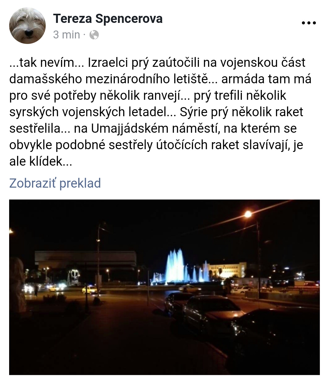 https://www.novinky.cz/zahranicni/blizk ... masku.htmlSyrská protivzdušná obrana sestřelila poblíž damašského letiště několik raket. Podle syrské agentury SANA je vypálil Izrael. Nedaleko letiště je i veletržní areál, v němž v sobotu skončil mezinárodní obchodní veletrh.
