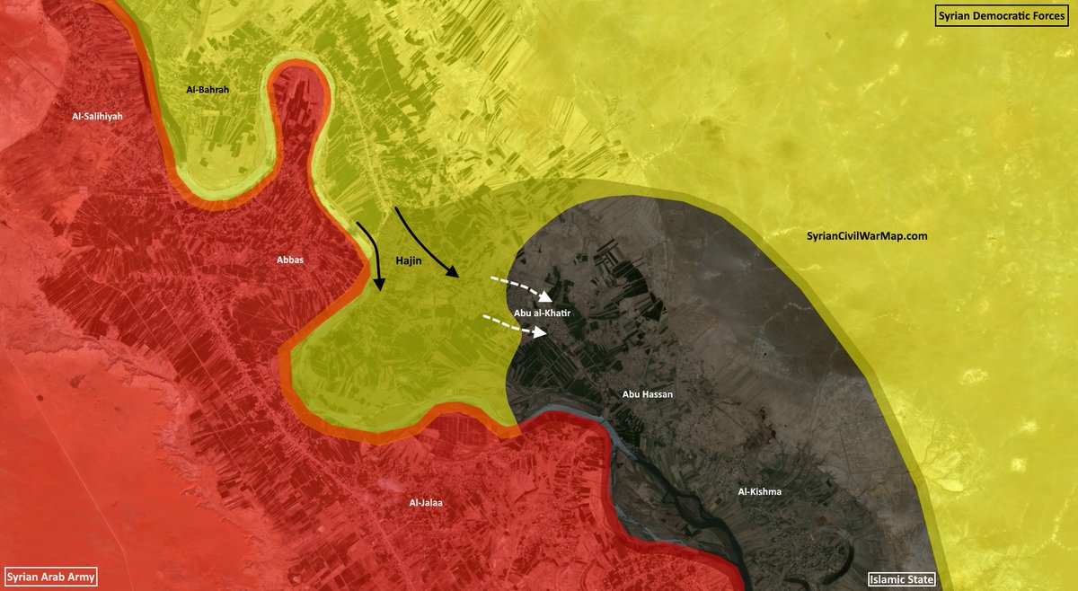 Obrana ISIS sa v Hajíne rozpadla a že Abu al Khatir je pod kontrolou SDF.